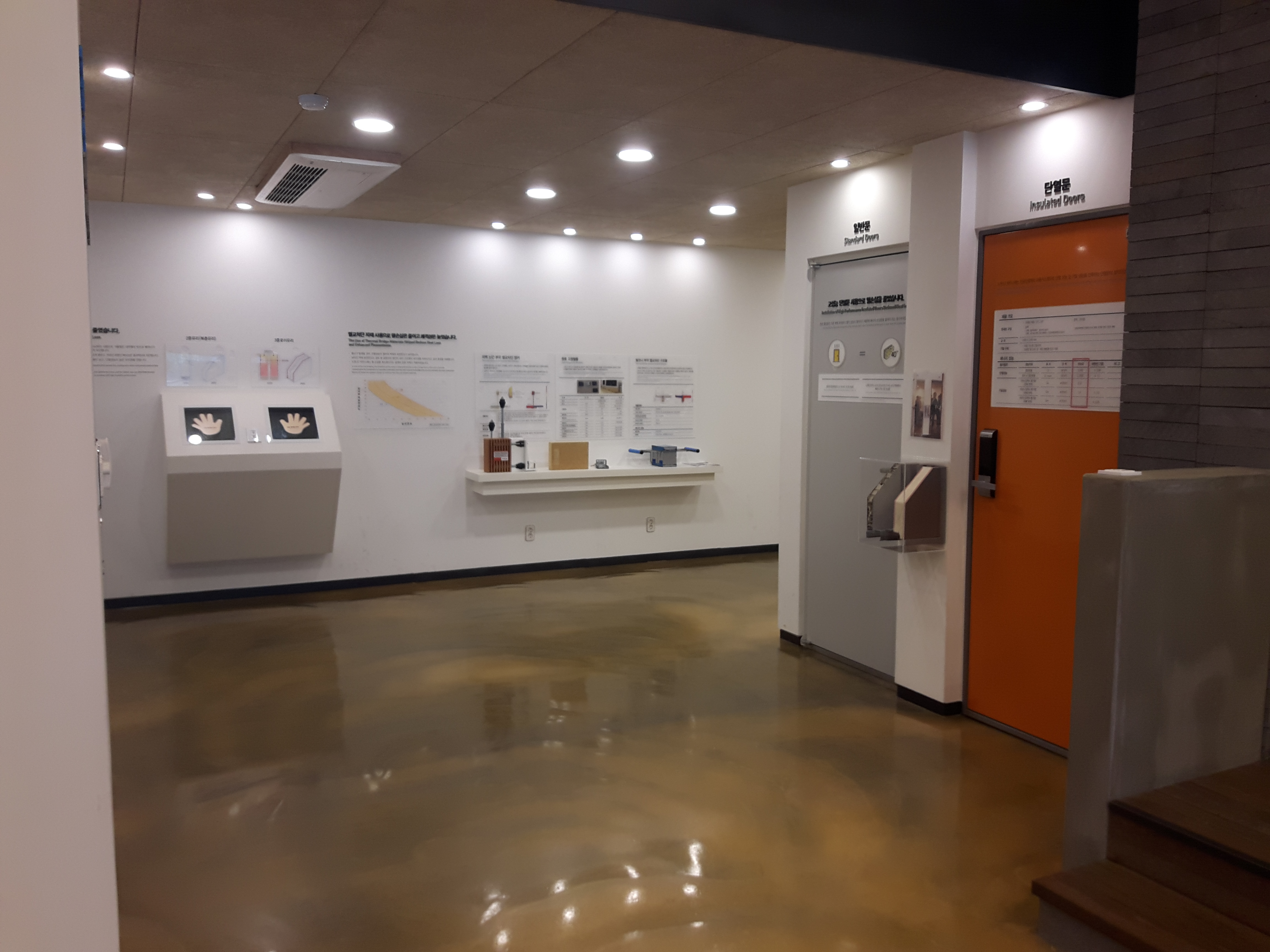 2층의 안쪽에는 친환경건축자재, 설비기술 등이 전시되어 있어요.