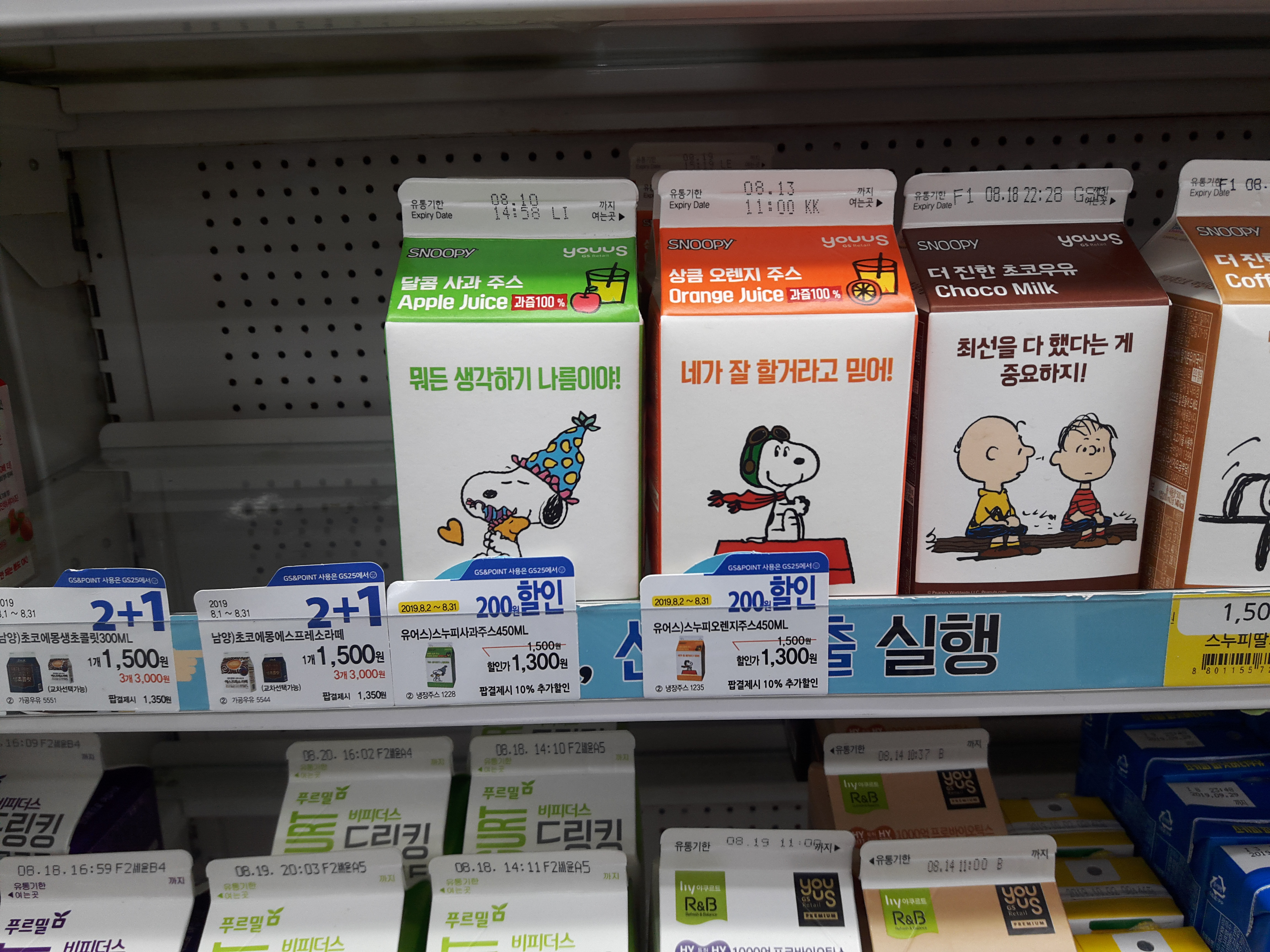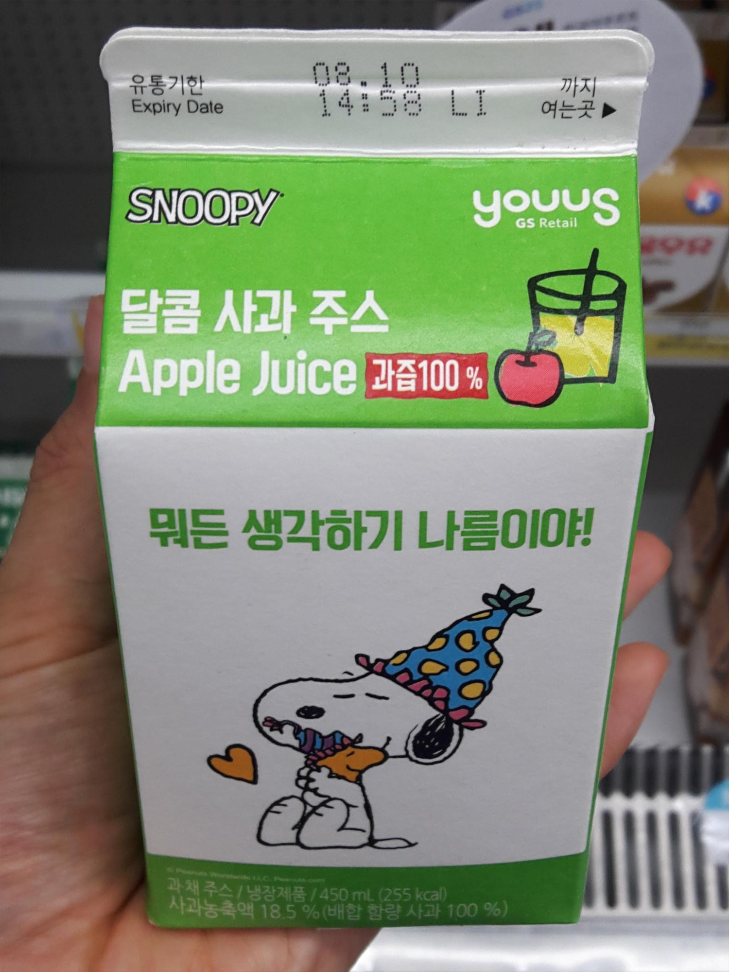 GS RETAIL 브랜드 YOUUS의 SNOOPY 달콤 사과 쥬스 먹은 리뷰 입니다.