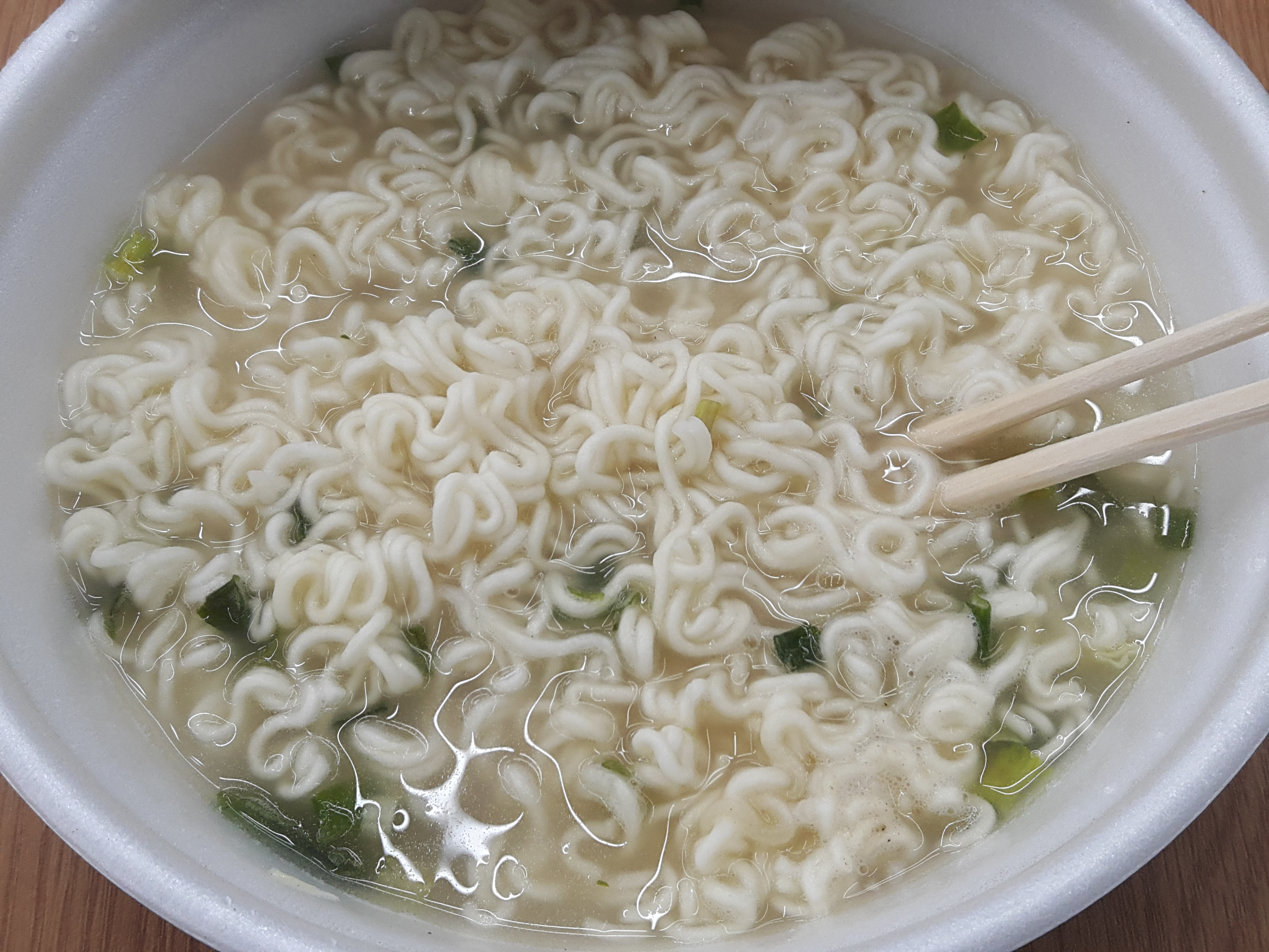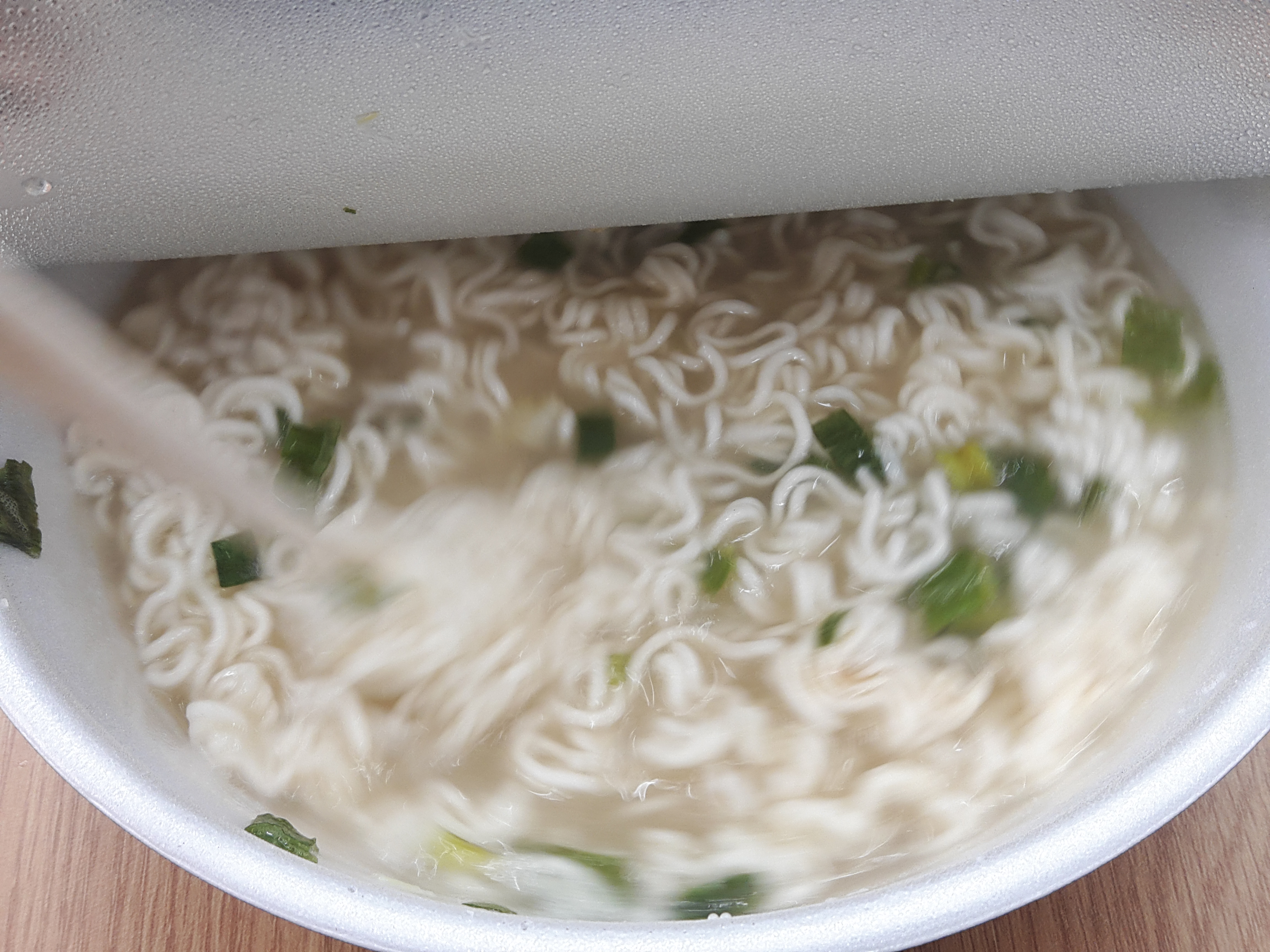 스프가 잘 섞이도록 중간에 한번 휙휙 젓가락으로 저어줍니다.