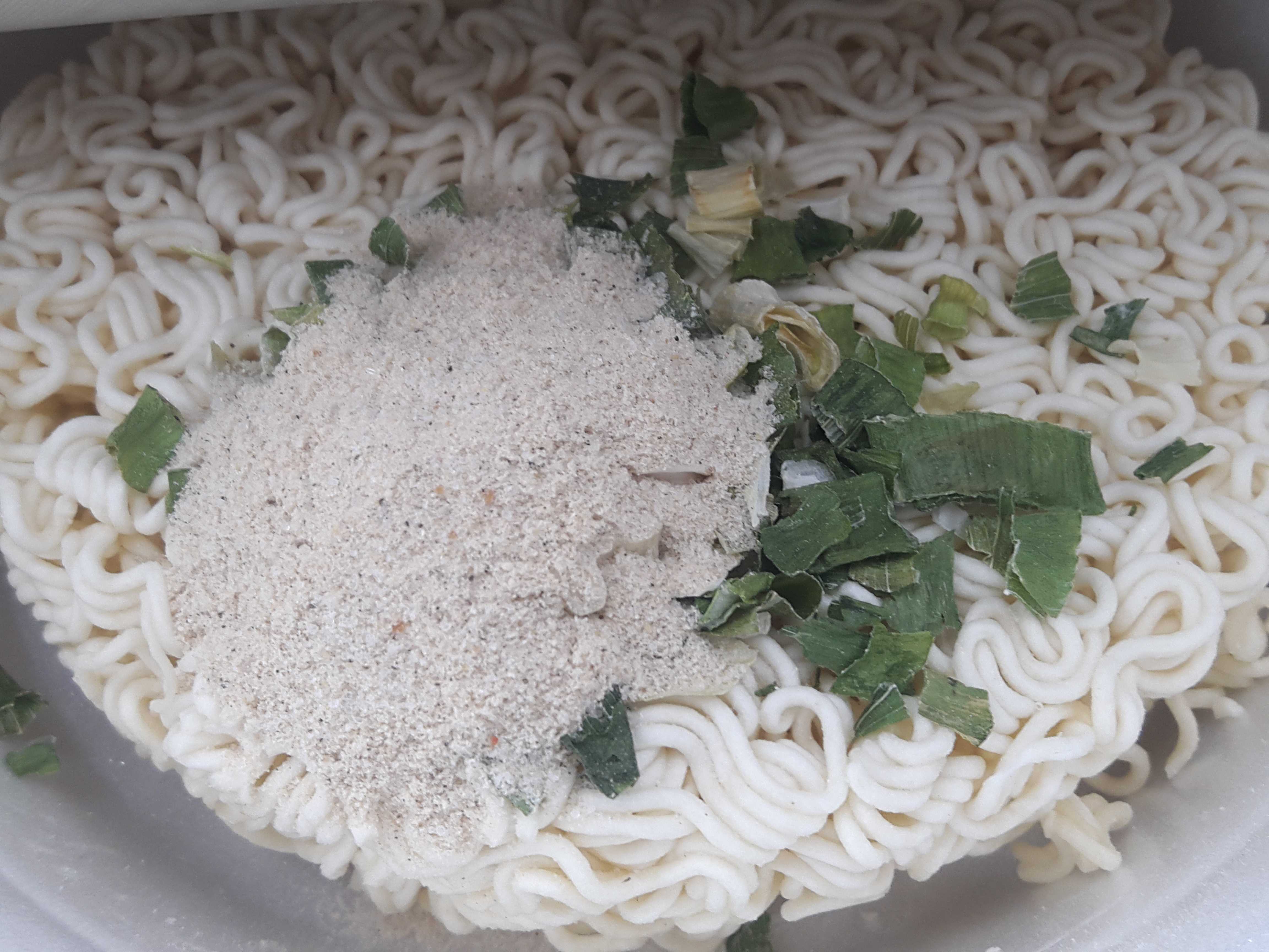 라면을 열면 분말스프와 건더기스프가 들어있습니다.