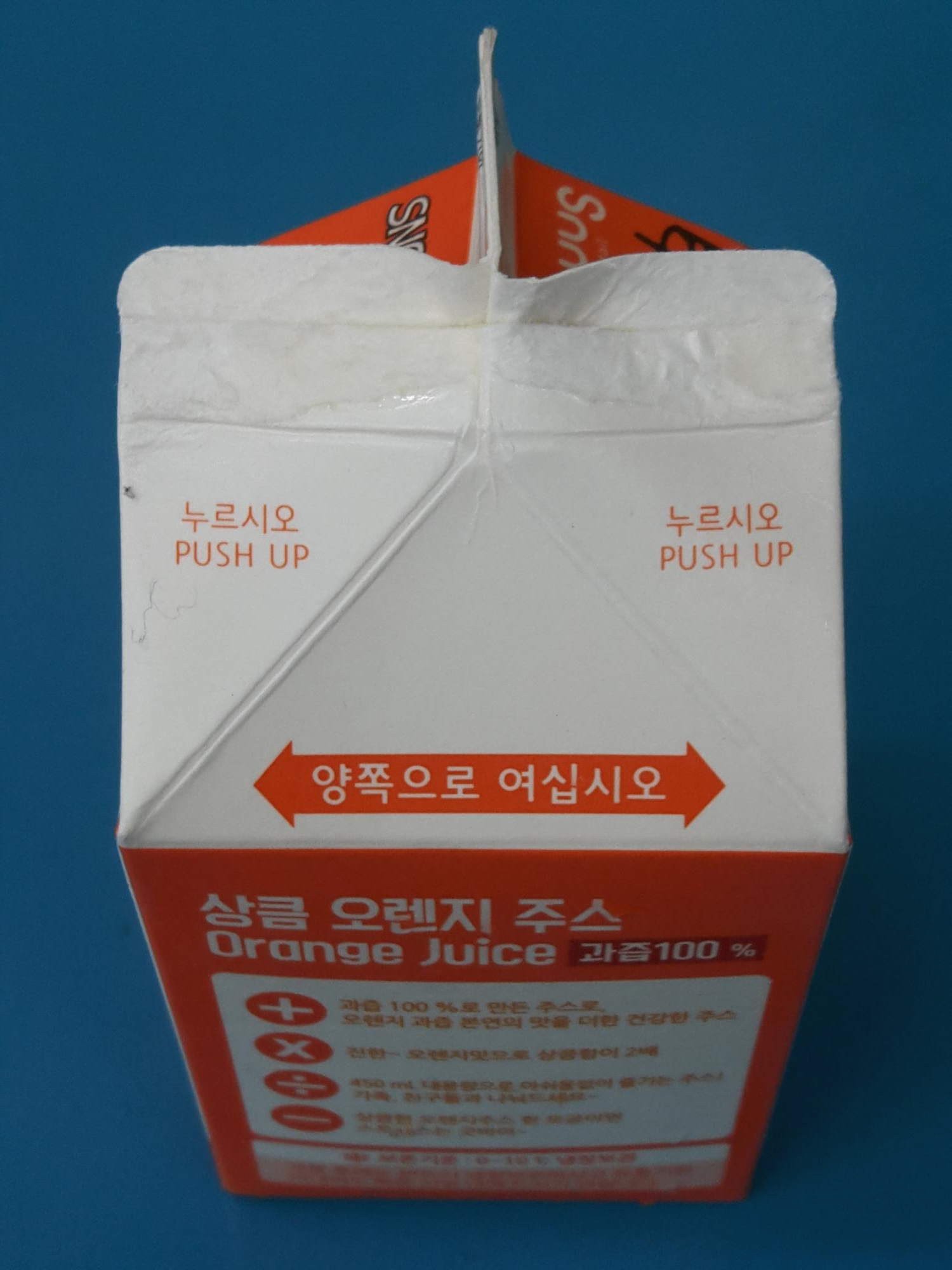 사과 쥬스에 이어 오렌지 쥬스도 나왔네요. 무엇보다 종이팩에 들어있어서 독특한거 같아요.