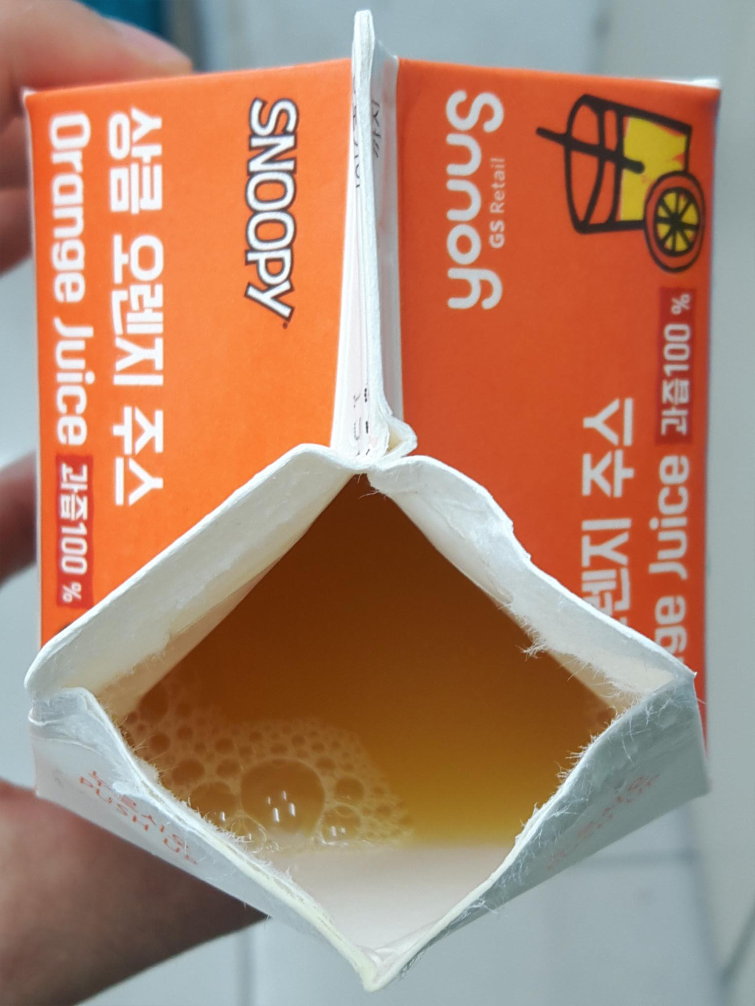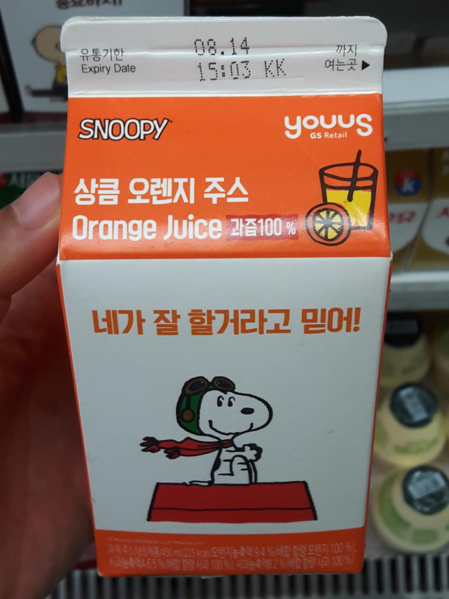 GS리테일 YOUUS에서 나온 SNOOPY 상큼 오렌지 주스 먹은 리뷰 입니다.