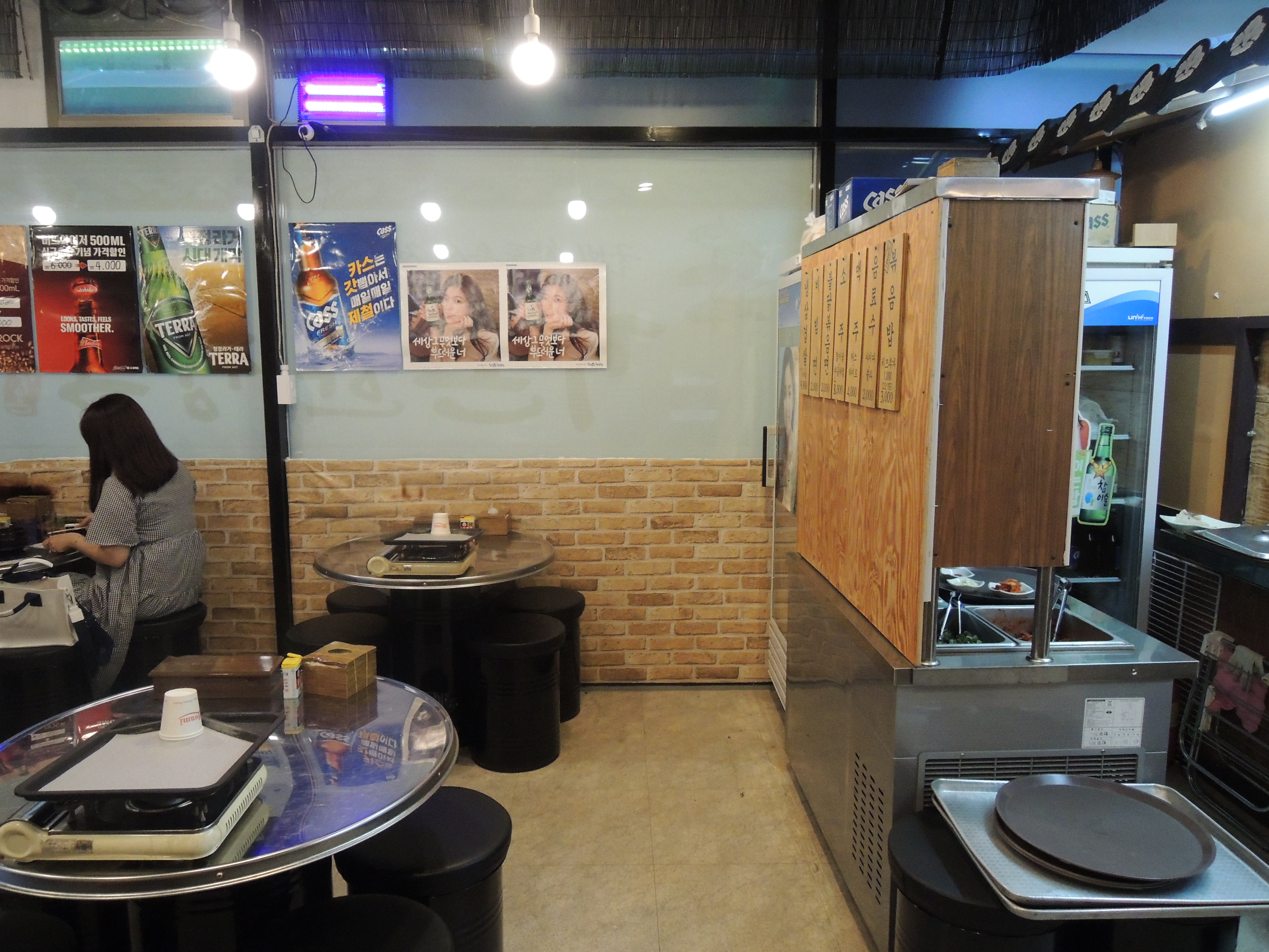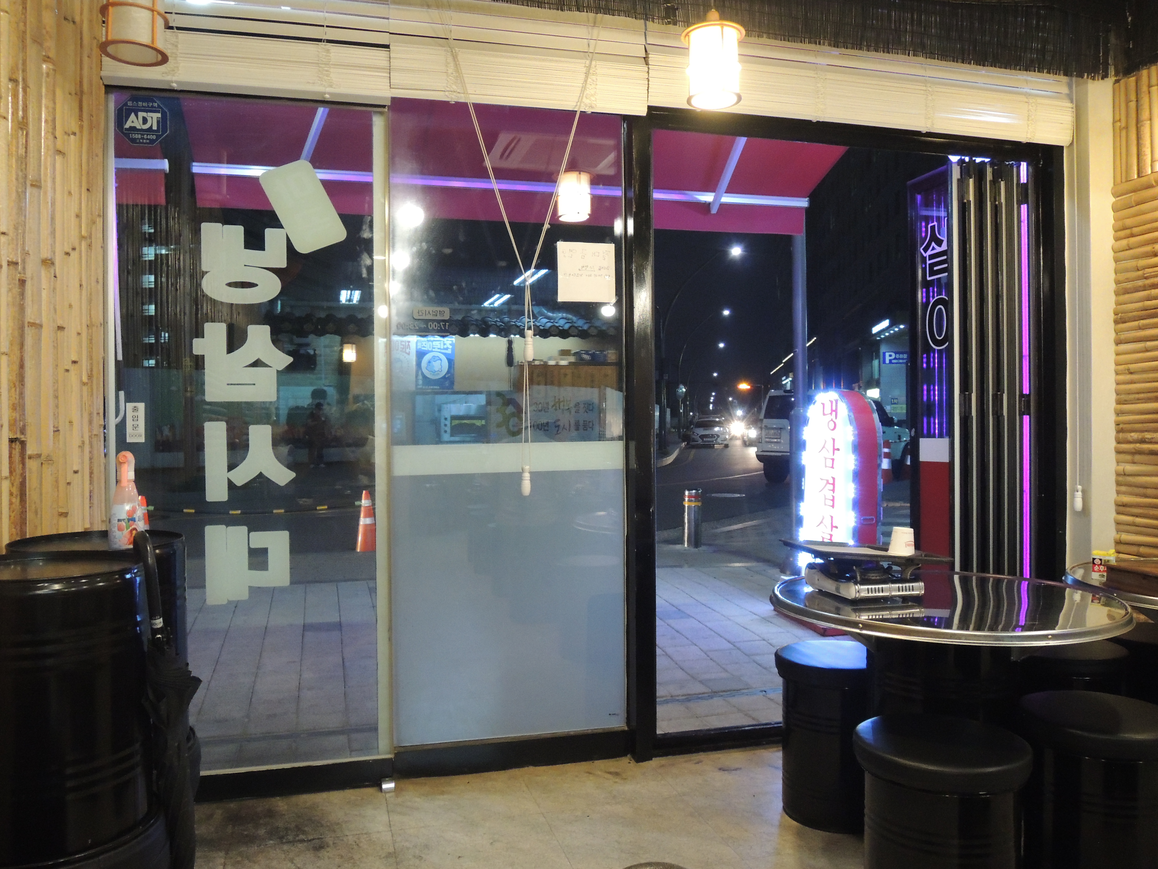 반대쪽에서 본 모습입니다. 냉동삼겹살이고 1인분에 9900원에 판매되고 있어요. 굉장히 젊은 남자분이 운영하고 계시더라고요. 매장은 보시다시피 넓지는 않고 친구랑 단둘이 조촐하게 냉삼에 소주한잔 생각날때 와봄직한 아지트같은 느낌입니다.