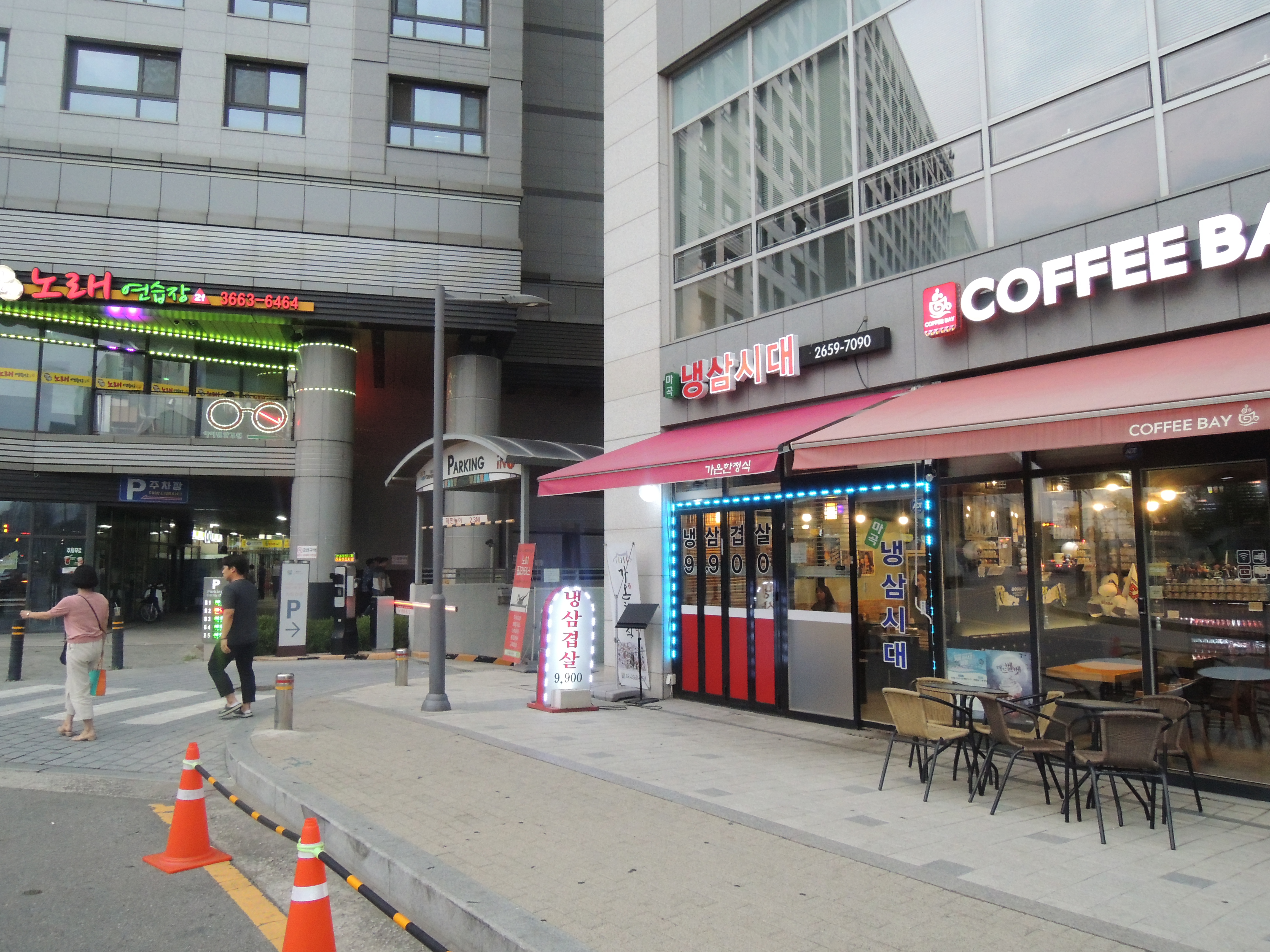 냉삼시대 마곡은 9호선 양천향교역 7번출구로 나오자마자 오른쪽을 보시면 위 사진처럼 롯데마트가 있고 롯데마트 왼쪽으로 길이 나있는데요, 이 길 끝으로 가서 왼쪽을 보시면