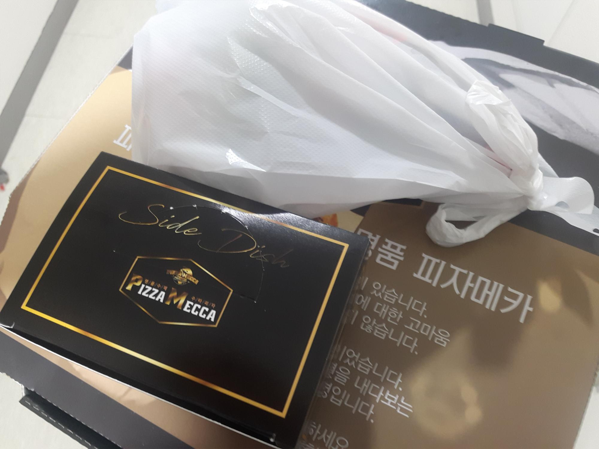 피자메카는 주문하고 배달까지 한 30~40분정도 걸렸어요. 요기요 앱에서 보니까 오전 11시에 주문가능한 피자전문점이 피자에땅하고 피자메카 2곳이었는데, 에땅피자는 전에 한번 먹어보아서 메카는 어떨지 궁금해서 여기로 주문했습니다. ㅎㅎ