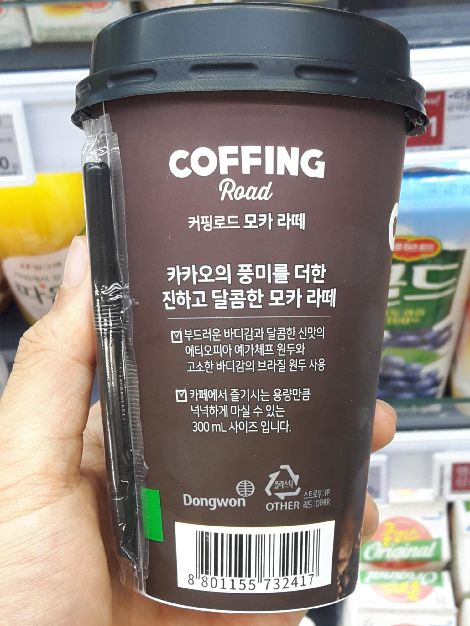 측면에 빨대를 뽑아서 상단에 꽂고 촵촵 먹어봅니다. 음 진한 초콜릿향이 나는 모카커피맛이네요. 고급스러운 모카라떼 먹는 느낌이고요. 무엇보다 맘에 드는건 300ml 용량이라 오래 먹을 수 있다는게 맘에 드네요. 달달한 맛이 좋은만큼 당함량이 높은편이라 많이 먹으면 건강에 좋지않을거 같고, 가끔 고급스러운 모카라떼 먹고 싶을때 한번씩 먹어야 겠어요.