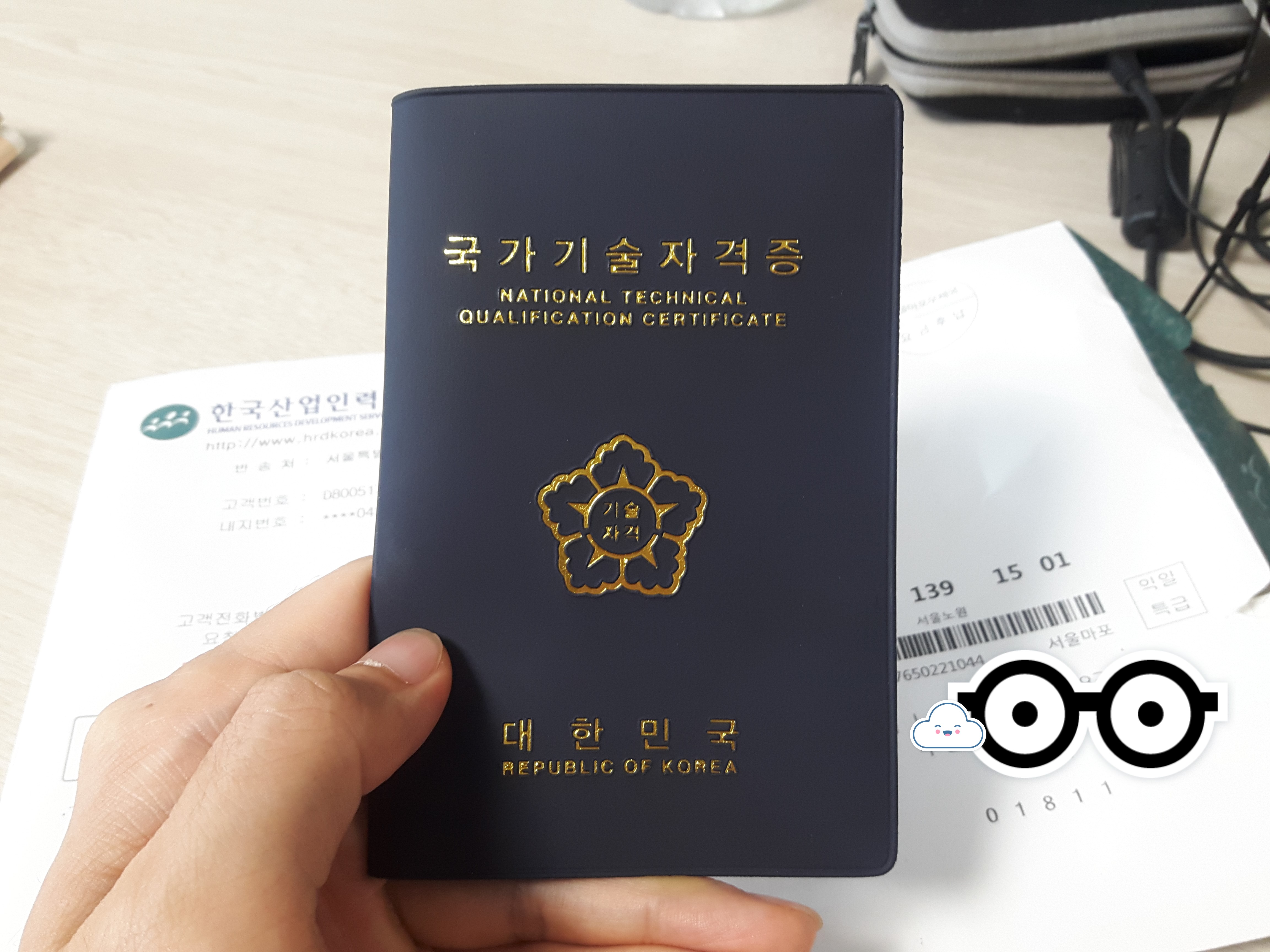 접으면 요런 모습입니다. 올한해가기전에 기사자격증 하나 따서 뿌듯하네요.