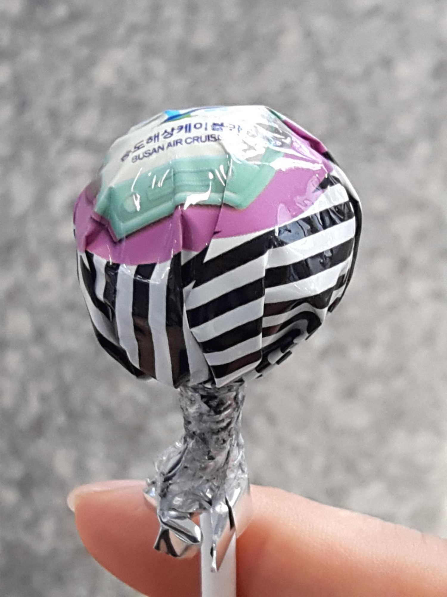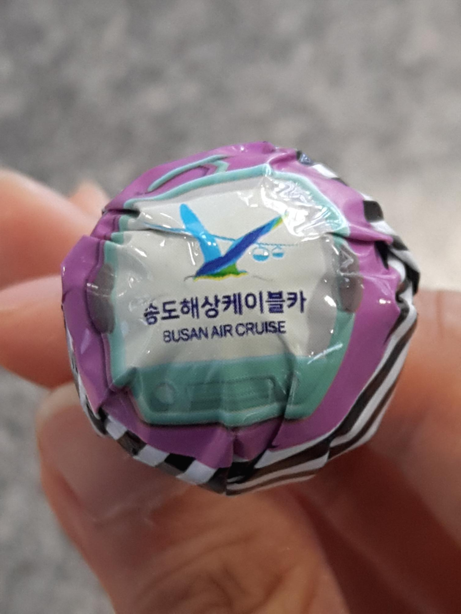 매표소에서 준 사탕을 먹어봅니다. 딸기사탕이네요. 오 근데 이거 포장지에 송도해상케이블카라고 적혀 있네요. 저는 그냥 츄파츕스주는줄알았는데 ㅎㅎ 뭔가 더 기분도 좋고 뿌듯한거 같아요.