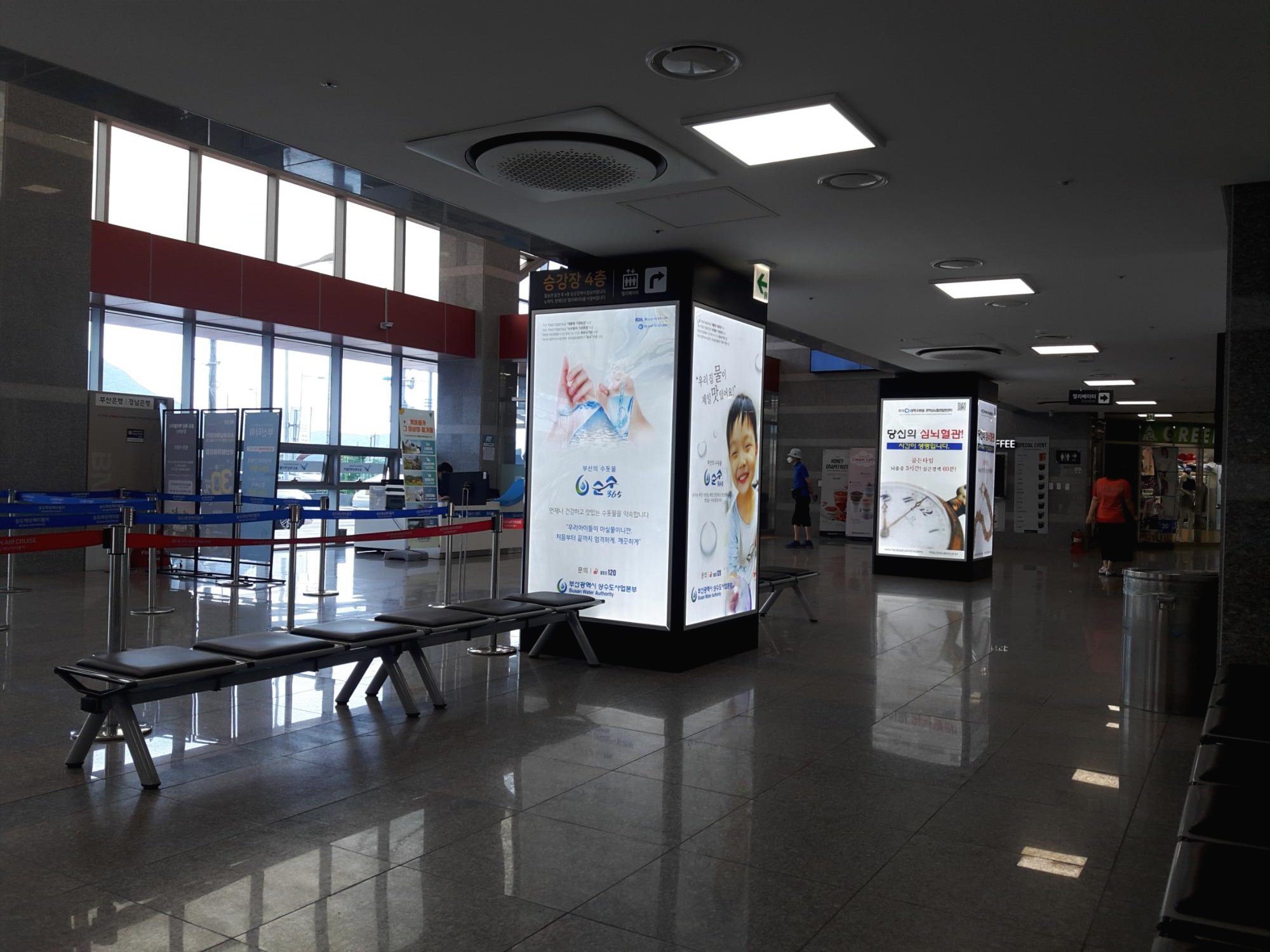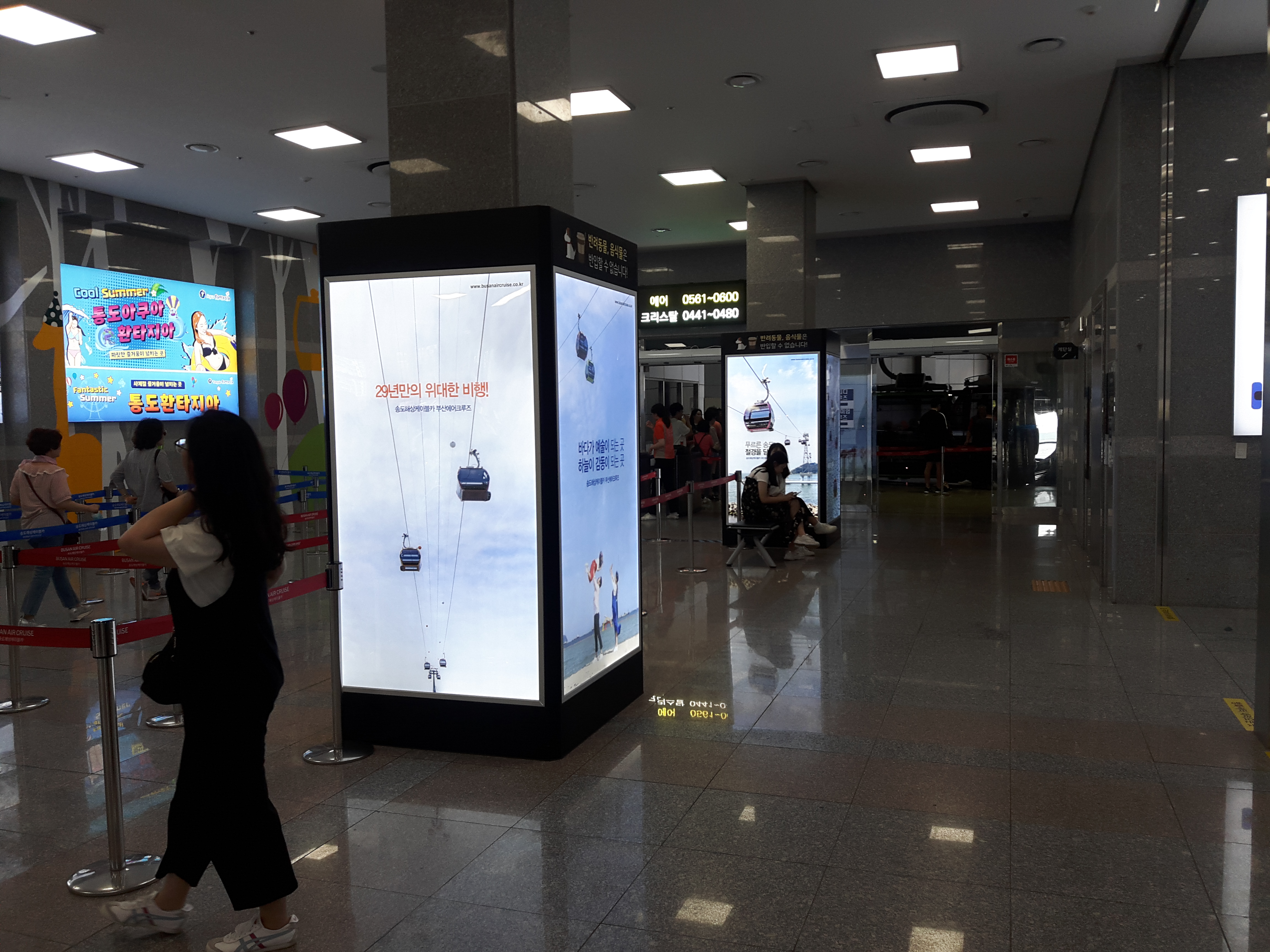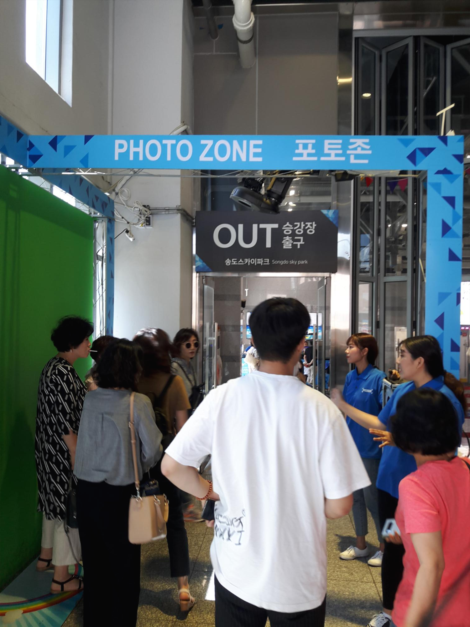 송도 해상 케이블카 탑승장 입구 입니다. 두번째사진 보시면 기둥에 파란색배경에 흰색화살표로 들어가는곳이 표시가 되어 있습니다.