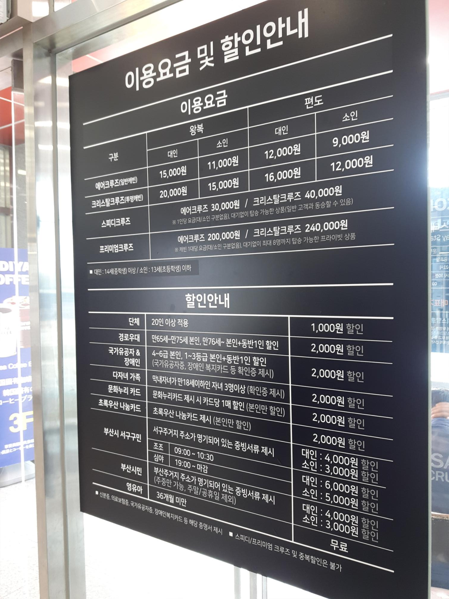 가격표입니다. 2019년 7월 기준으로 일반케이블카의 경우 성인 1인당 왕복 15,000원, 편도 12,000원에 판매되고 있습니다. 바닥이 투명해서 아래까지 다 보이는 투명케이블카의 경우 좀 더 비쌉니다. 케이블카 에서 아래 보는게 무서울거 같기도 해서 저는 그냥 일반케이블카 탔어요.