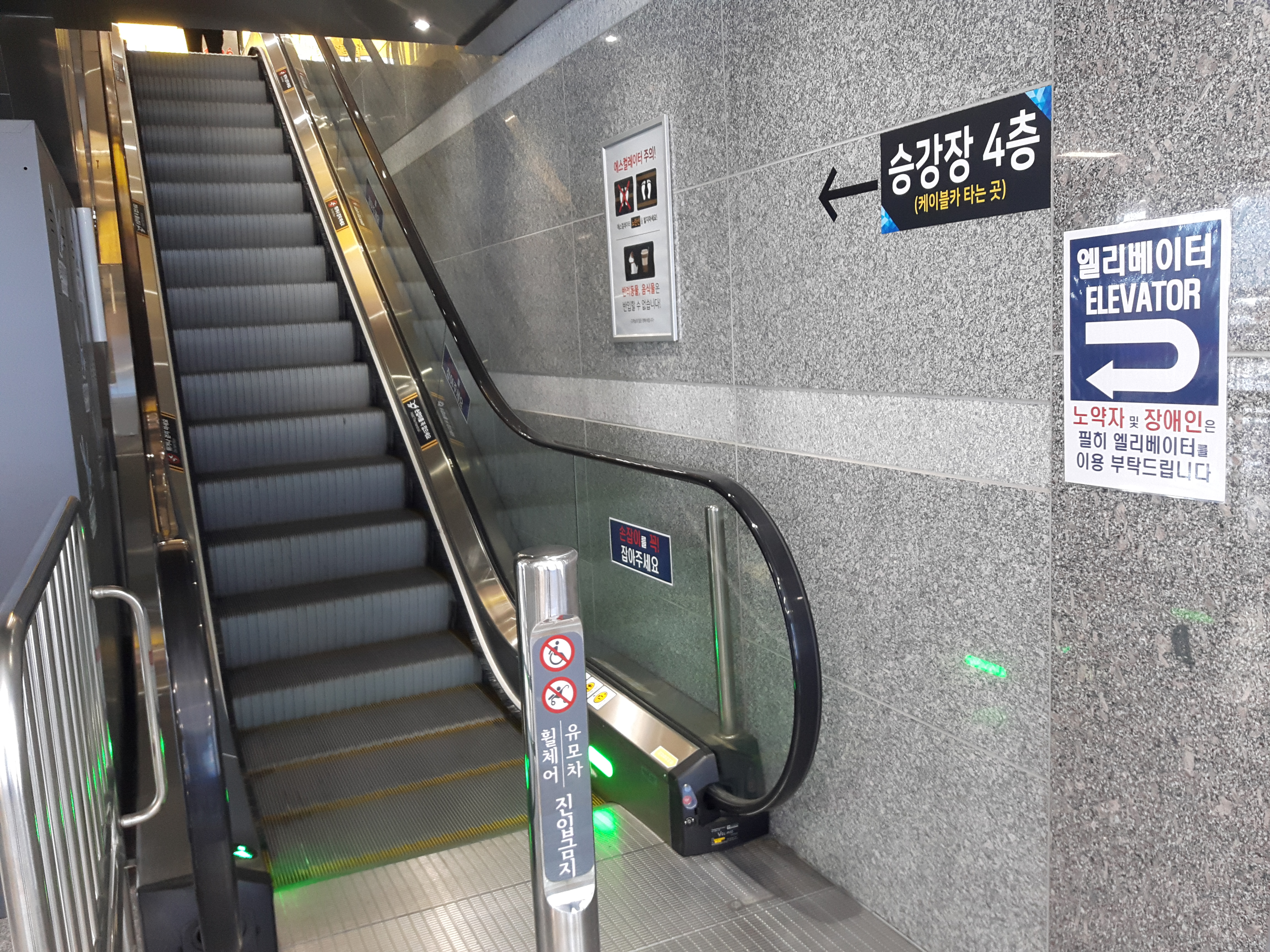 승강장은 4층 입니다. 엘레베이터로 올라갈수도 있고 위 사진처럼 에스컬레이터로 올라갈 수도 있어요. ㅎㅎ