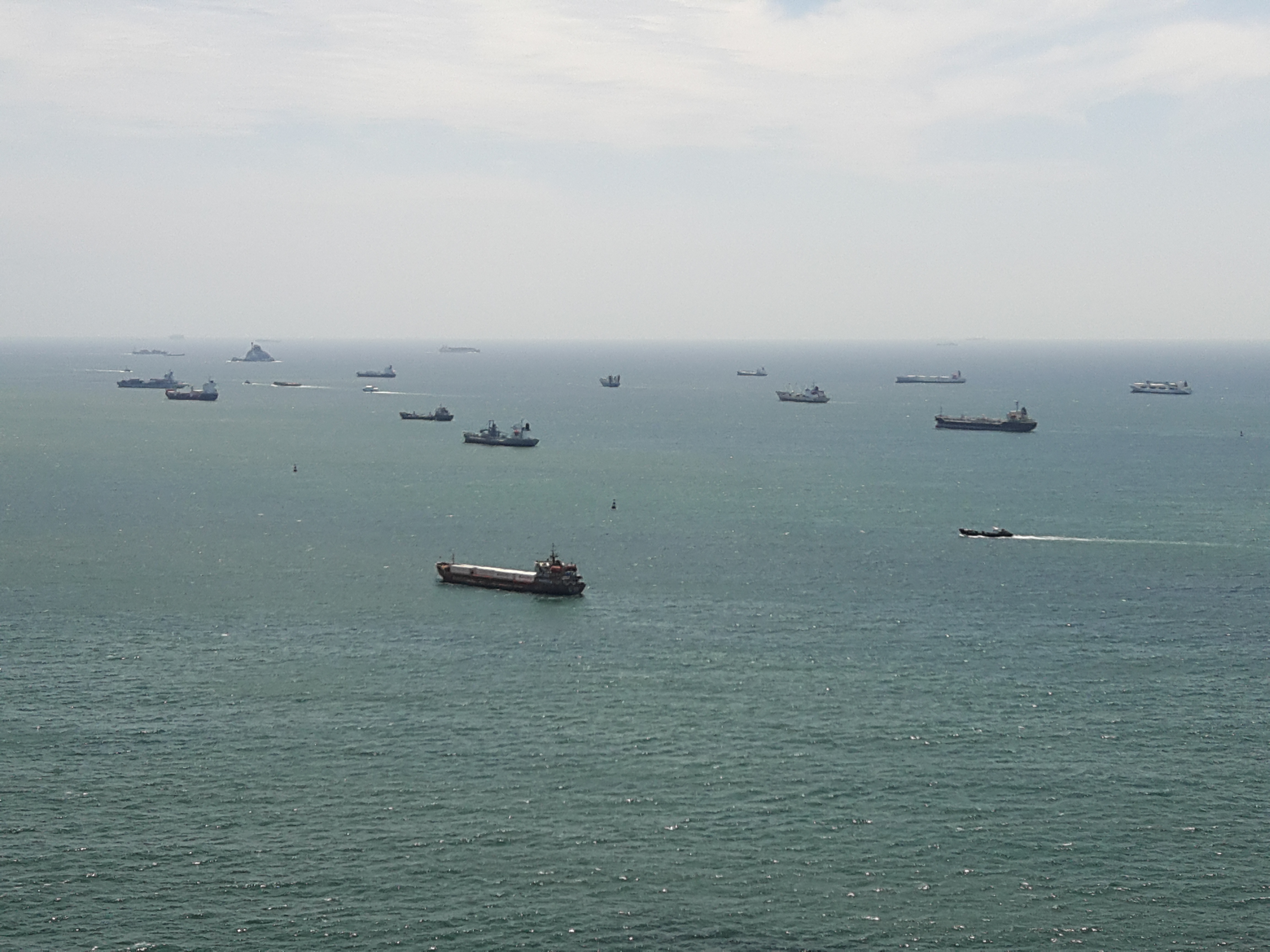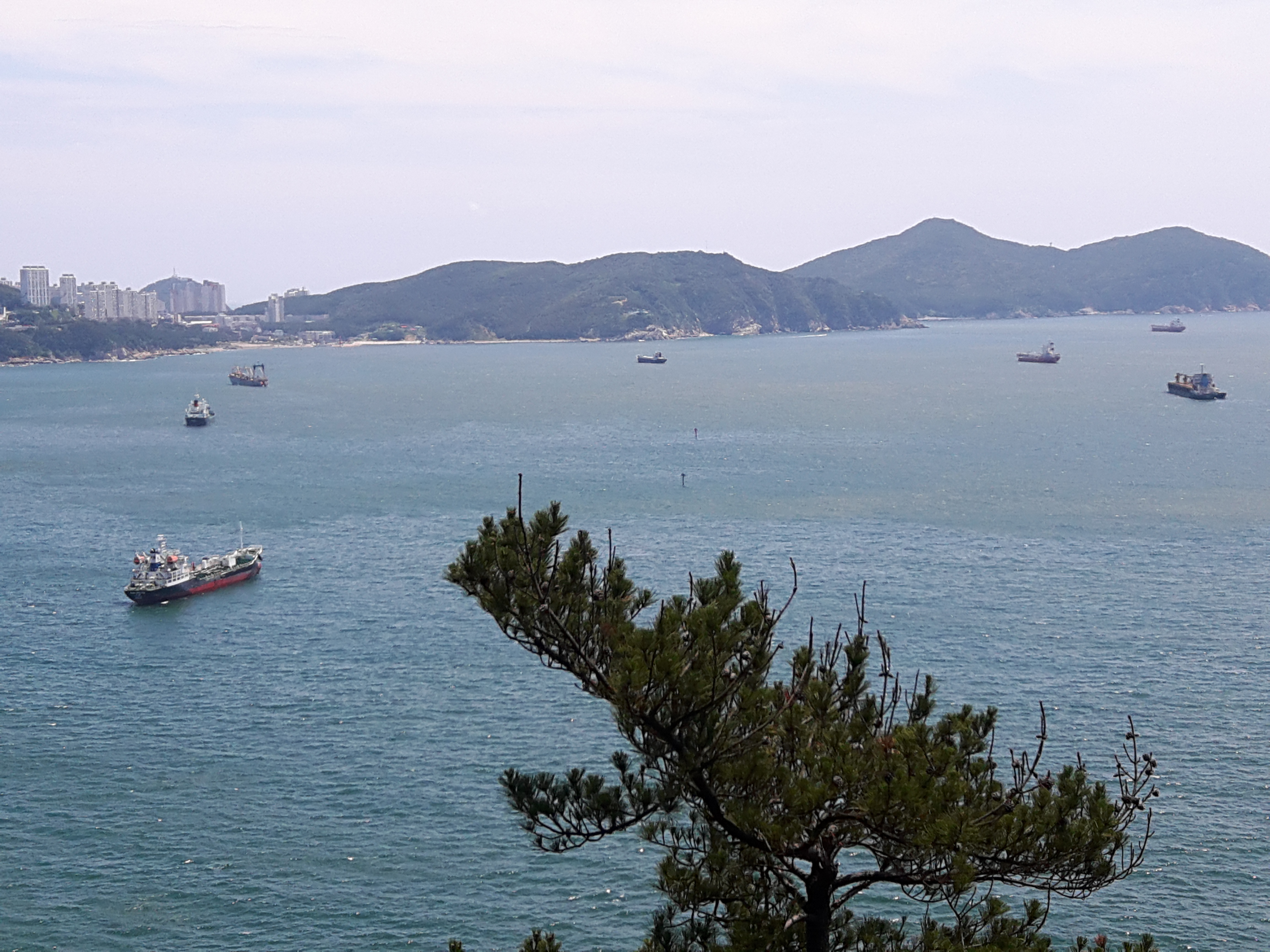 바다에 배들이 많이 떠있더라고요. 무슨배인지는 잘 모르겠습니다. 이렇게 많은 배들이 떠있는 바다는 여기서 처음 봅니다.