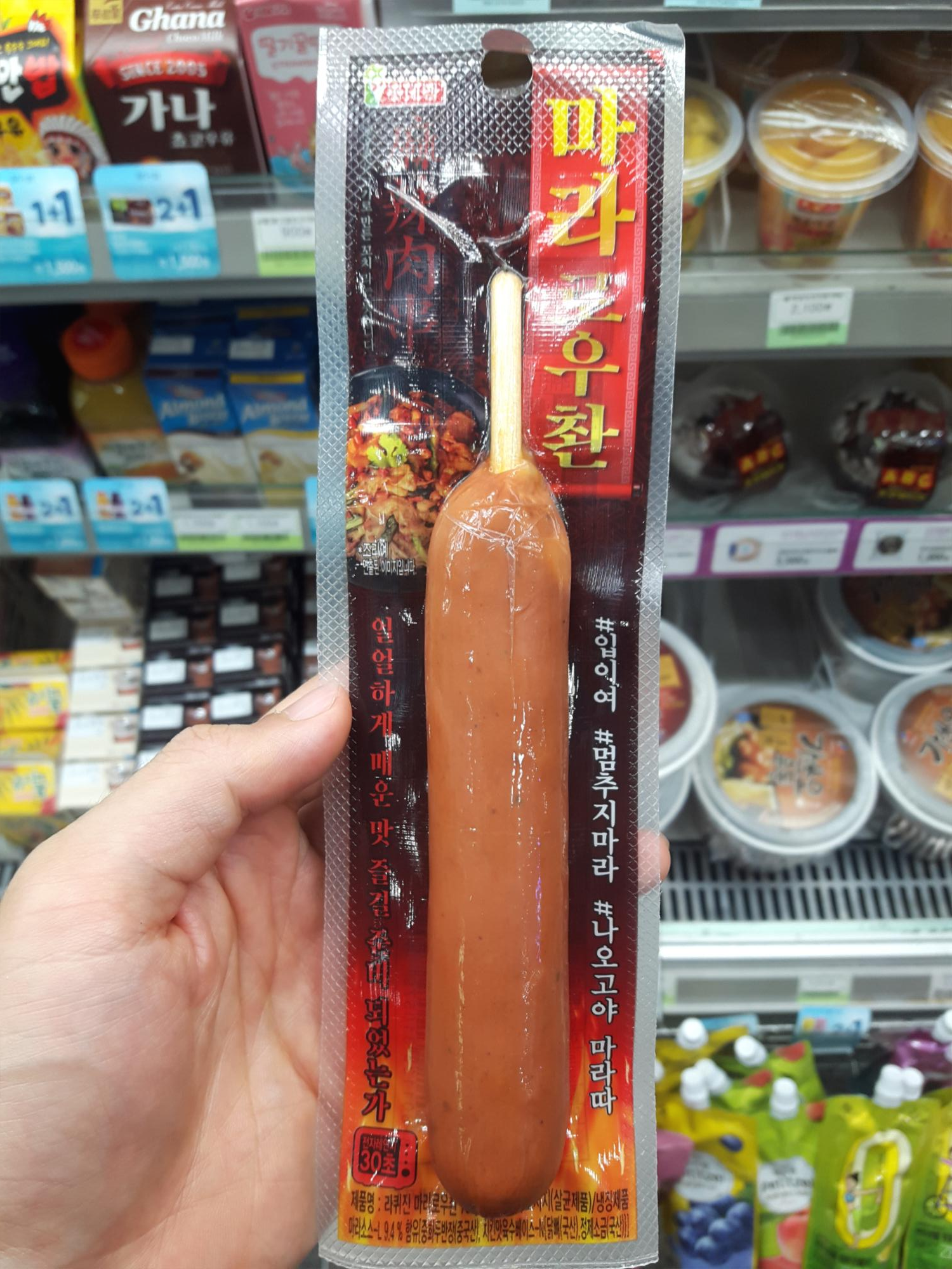 얼얼하게 매운맛 즐길 준비되었는가라는 문구가 재밌네요. 마라로우촨 꼬치 패키지는 매운맛을 강조했어요. 딱 패키지디자인을 보고 들었던 생각은 "얼마나 매울까?" 였습니다. 예전에 먹어본 청양고추맛 꼬치는 정말 매웠는데 그 생각도 좀 났네요, ㅎㅎ