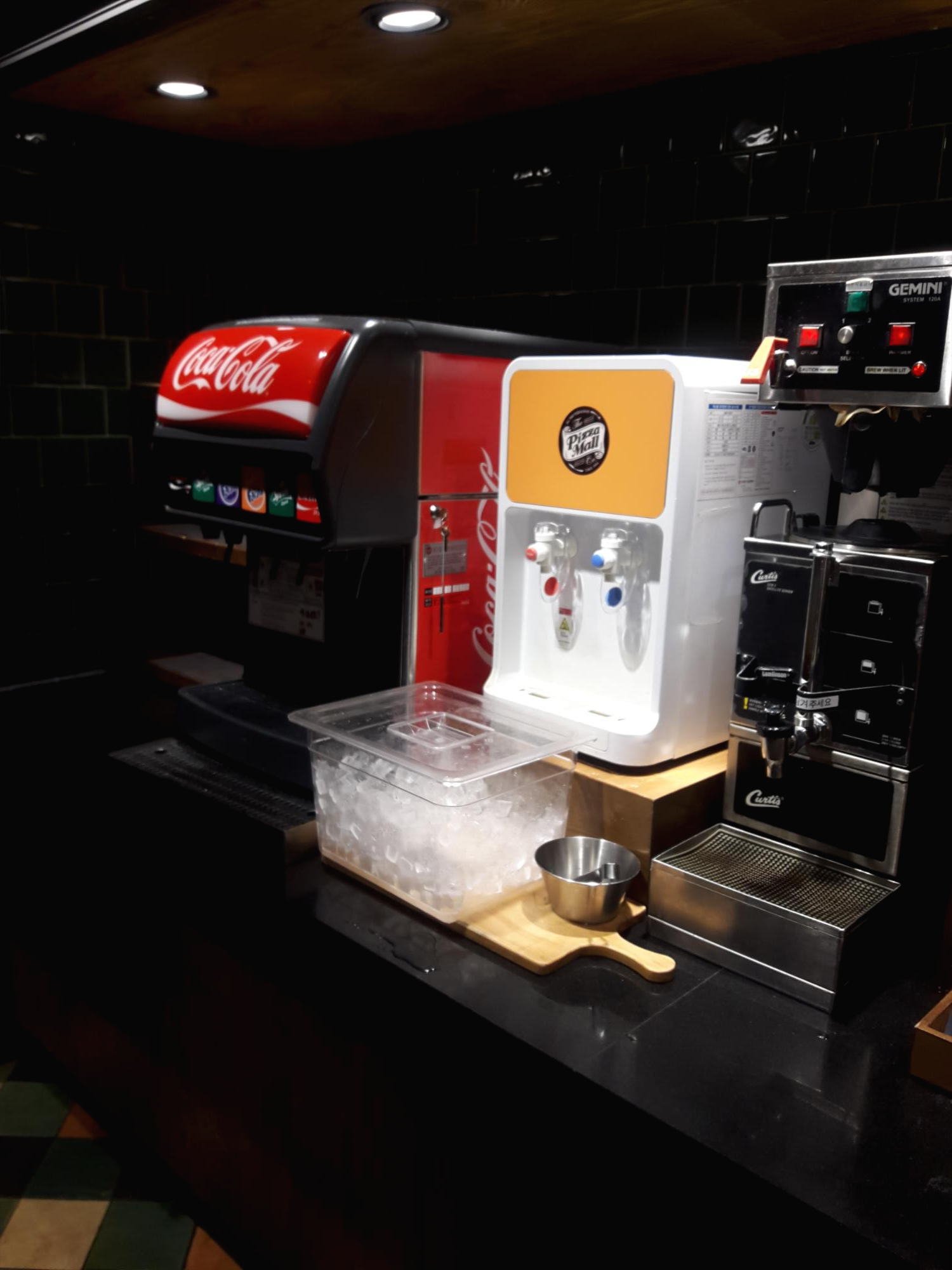 여기는 다양한 탄산음료와 커피를 맛볼 수 있는 음료바에요.