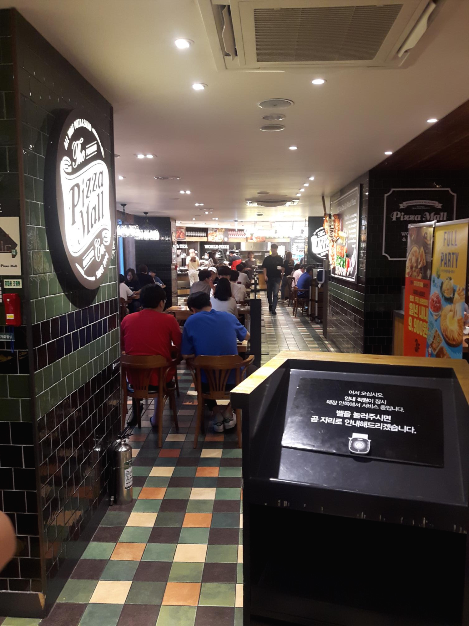 피자몰 매장은 이렇게 되어 있어요. 각 테이블마다 번호표가 있어서 계산 후 지정된 자리에 앉으면 됩니다.