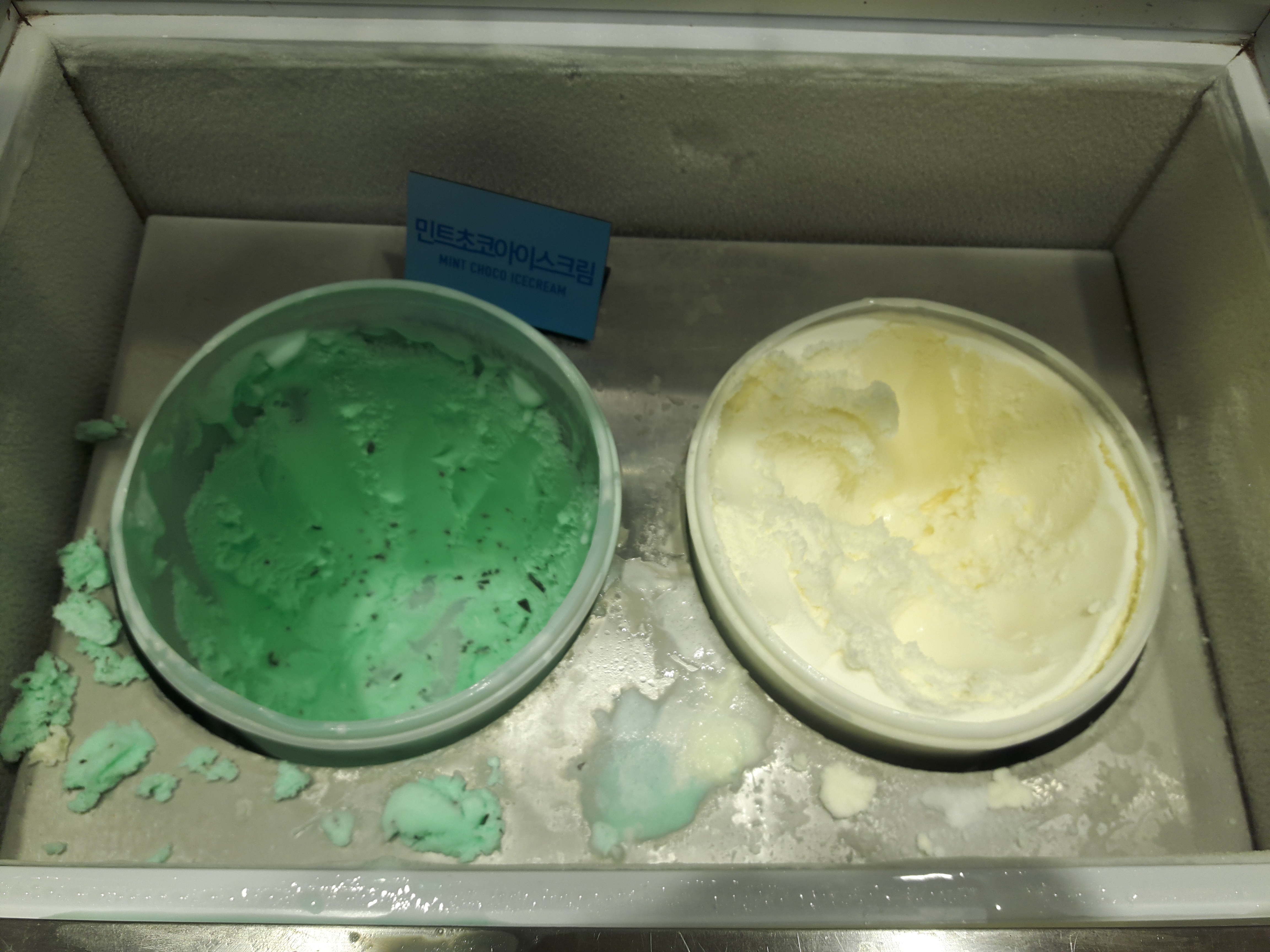 여기는 아이스크림 코너에요. 전에는 초코바나나아이스크림이었던거 같은데, 민트초코아이스크림으로 새롭게 바뀌었어요. 시즌이 바뀔때마다 아이스크림도 같이 바뀌곤 하나봐요. ㅎㅎ