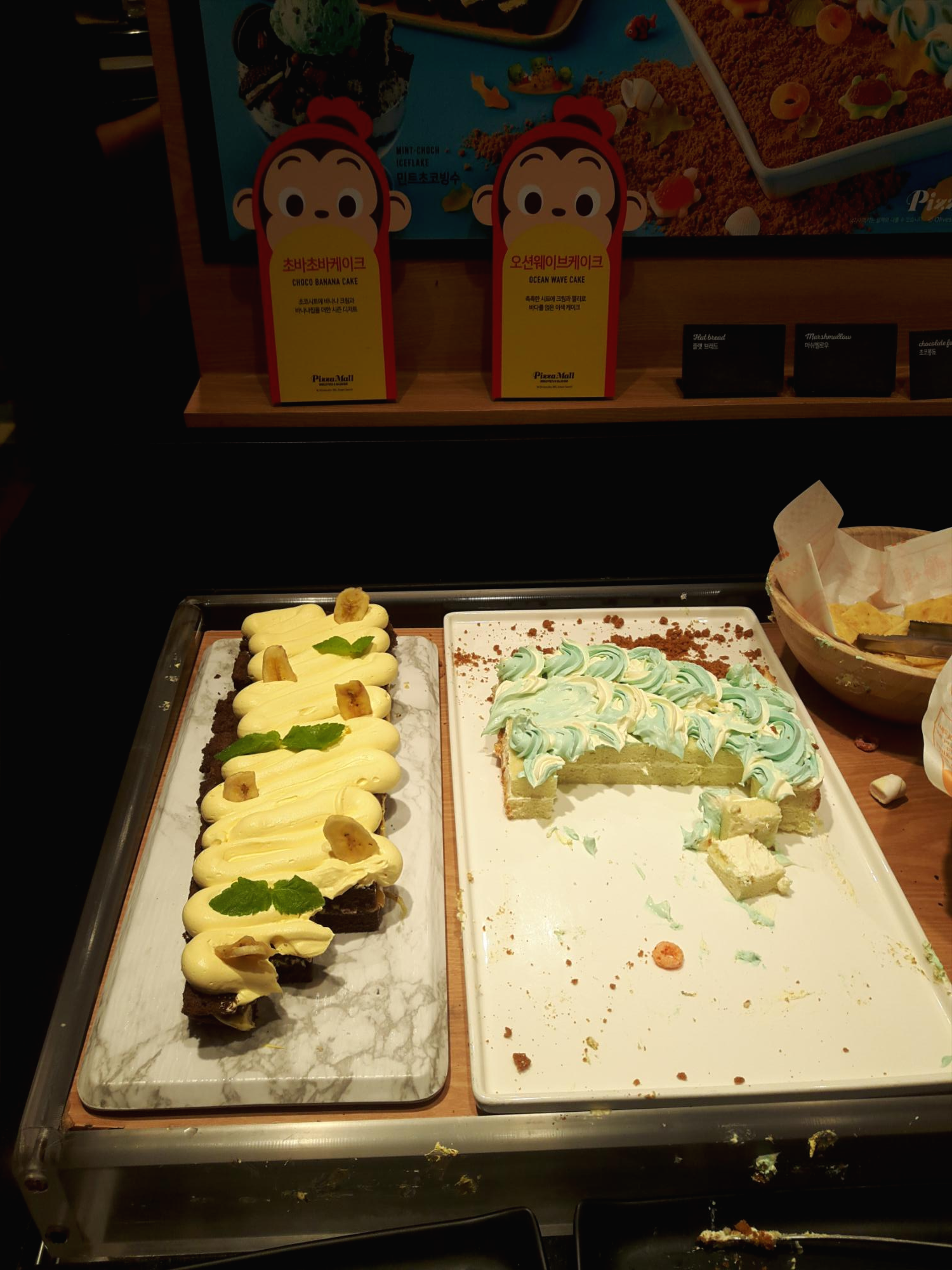 마지막으로 새로나온 신메뉴 케이크류와 바닐라아이스크림을 담아왔어요. 초바초바케이크와 오션웨이브케이크에요.