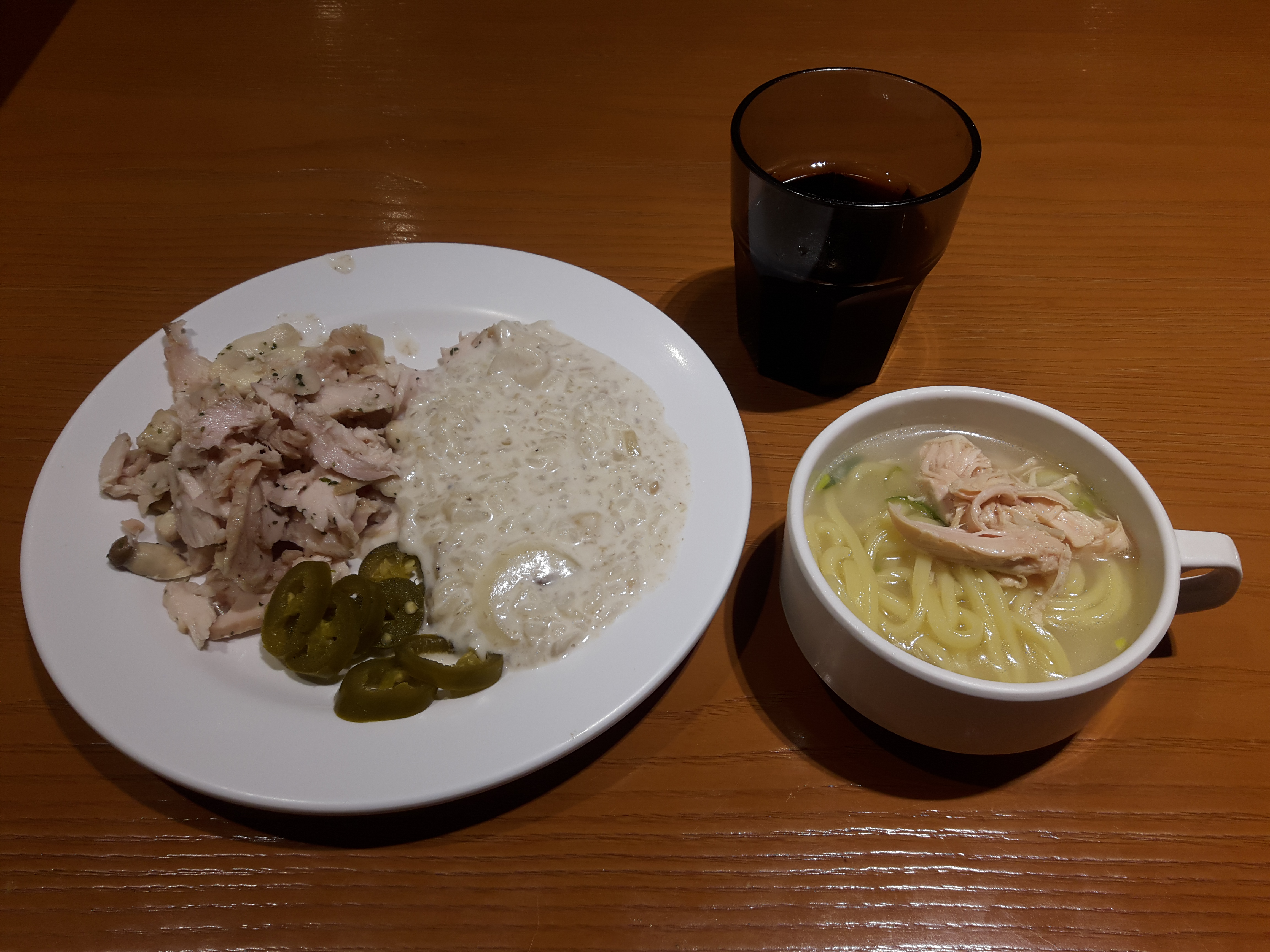 세번째로 가져온건 할라피뇨와 닭가슴살, 그리고 크림리조또와 콜라, 마지막으로 백속파스타에요.