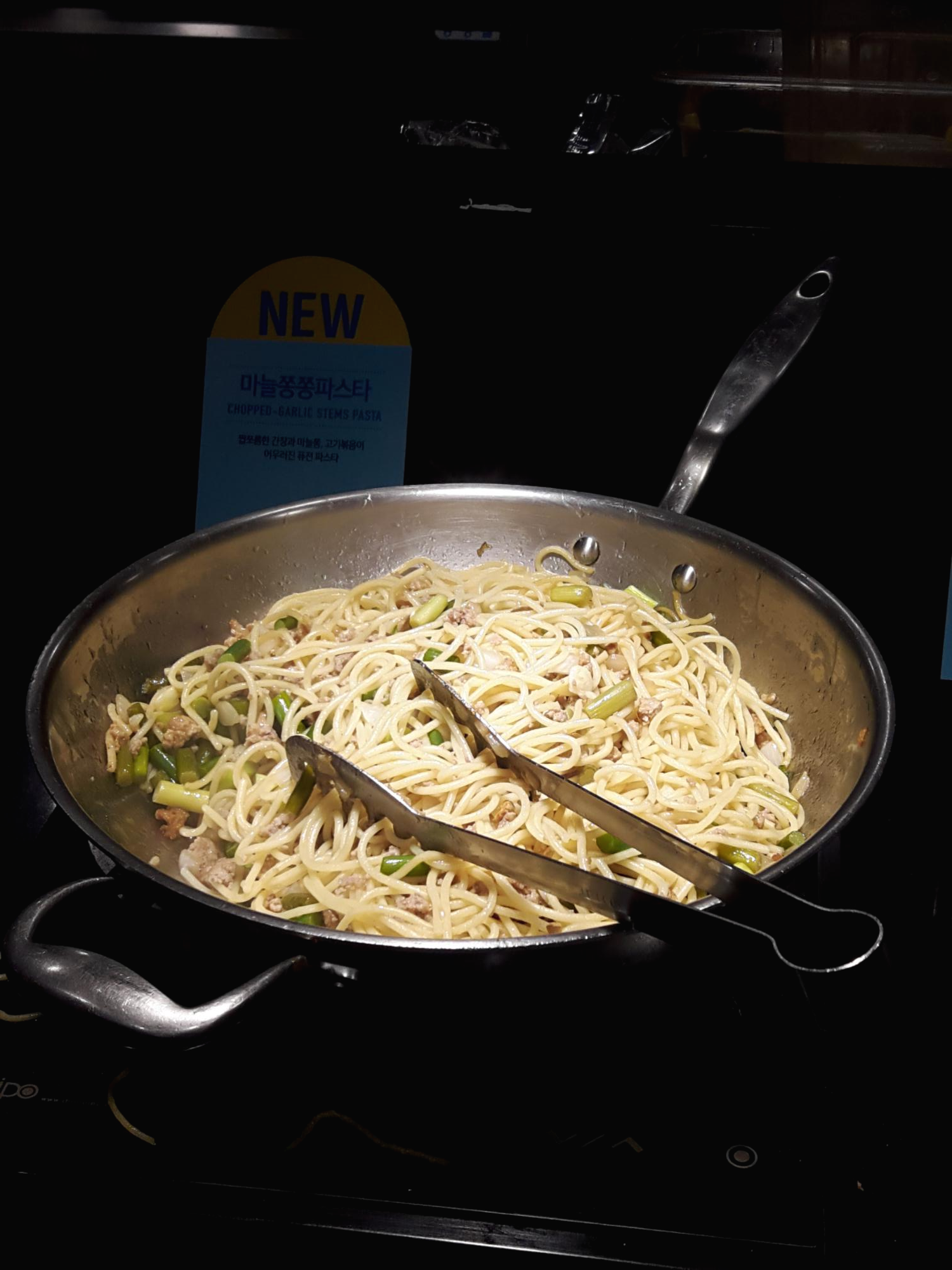 신메뉴 마늘쫑쫑파스타와 원기충전 백숙파스타에요. 이 두 파스타 모두 전에는 못본 파스타네요. 마늘쫑쫑파스타는 갈릭파스타에 마늘쫑의 아삭한 식감을 느낄수 있어 맛있어요. 국물은 없는 봉골레파스타느낌이고요. 백숙파스타, 요게 진짜맛있었어요. 일단 하나도 안맵고요. 뼈를제거한 닭살을 면과 같이 먹으니 참 좋더라고요. 닭육수와 파스타의 조합이라니 정말 아이디어 좋은거 같아요.