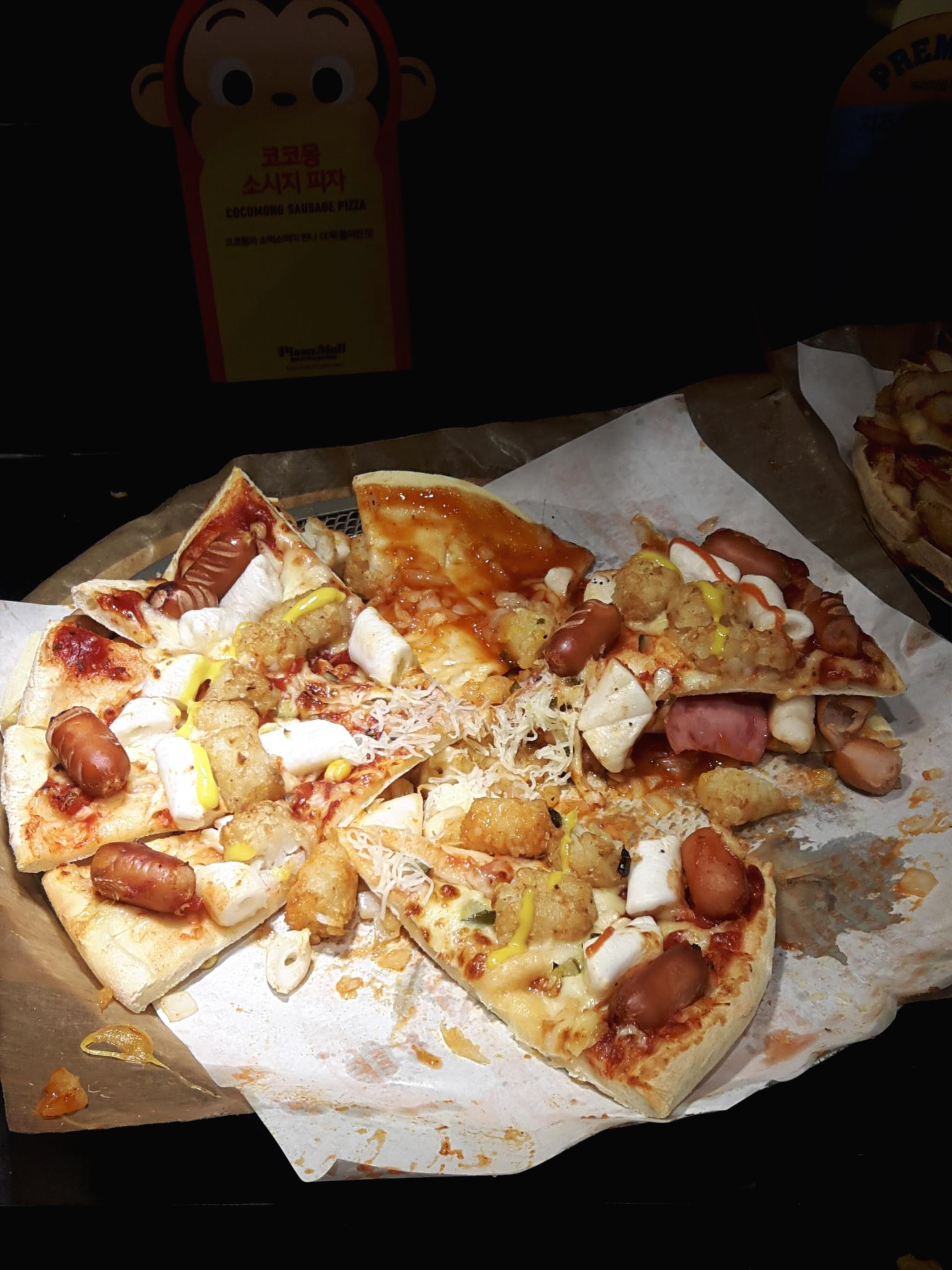 치즈듬뿍써니피자와 코코몽 소시지피자도 있네요. 이 두 피자는 시즌 신메뉴에요. 여름시즌이 지나고 새로운 시즌이 오면 메뉴가 바뀔 수 있어요. 치즈듬뿍써니피자의경우 이랜드어플 피자몰 이벤트페이지에서 봤었죠. ㅎㅎ 올데이 9,900원 노원점에서도 만날 수 있습니다. 코코몽 소시지피자는 일반 도우에 헤쉬포테이토, 미니소시지, 그리고 구운 떡이 올라간 피자에요. 미니소시지와 떡, 헤쉬포테이토의 서로다른식감이 느껴질거 같아, 정말 맛있어 보여요.