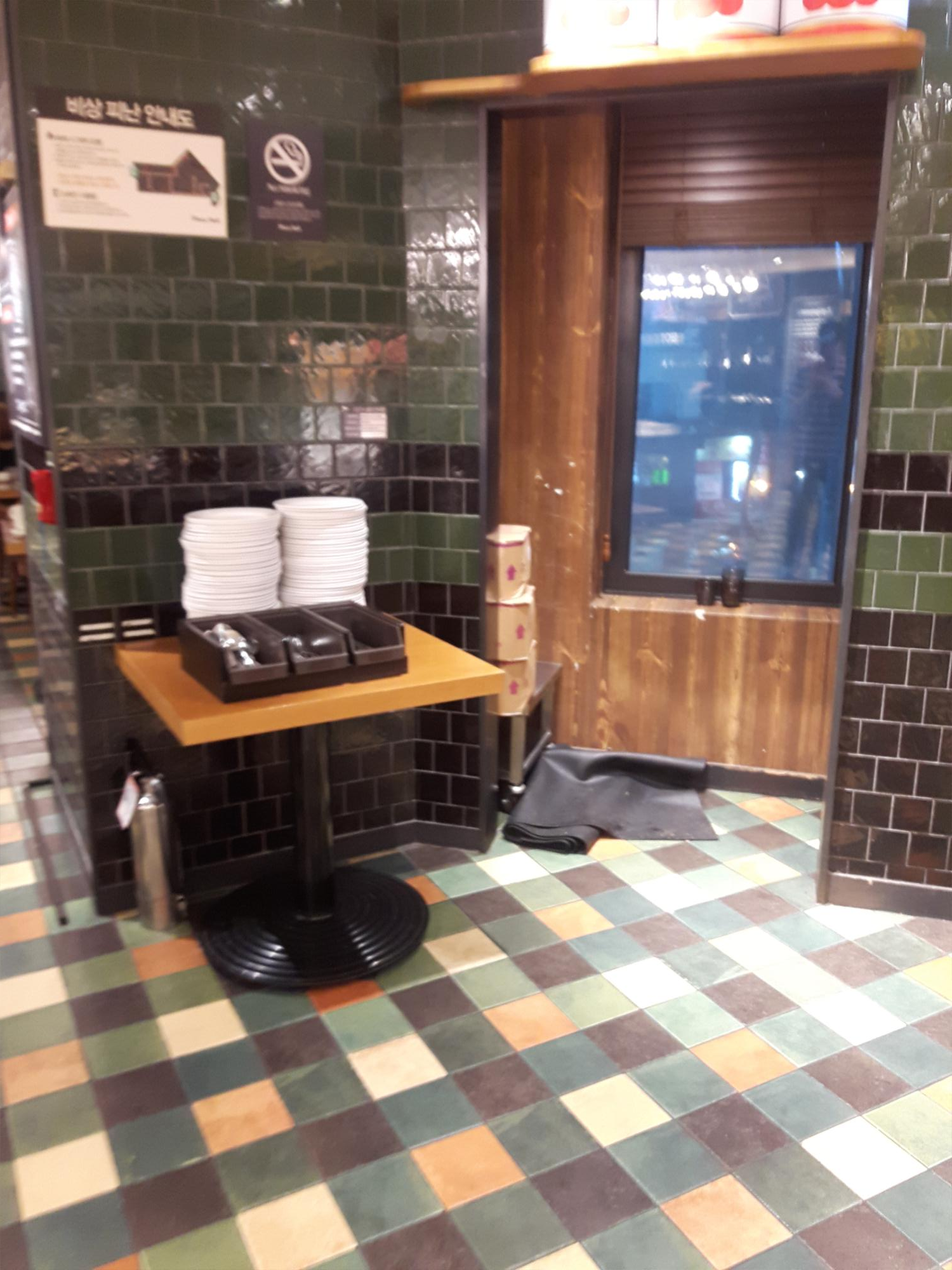 여기는 다 먹은 그릇을 놓는 퇴식구에요. 노원 피자몰은 합리적인 가격에 서비스를 제공하기위해 그릇정리는 셀프로 운영하고 있어요. 사실 뷔페에서는 자기가 먹은 그릇은 자기가 정리하는게 맞는거 같아요.
