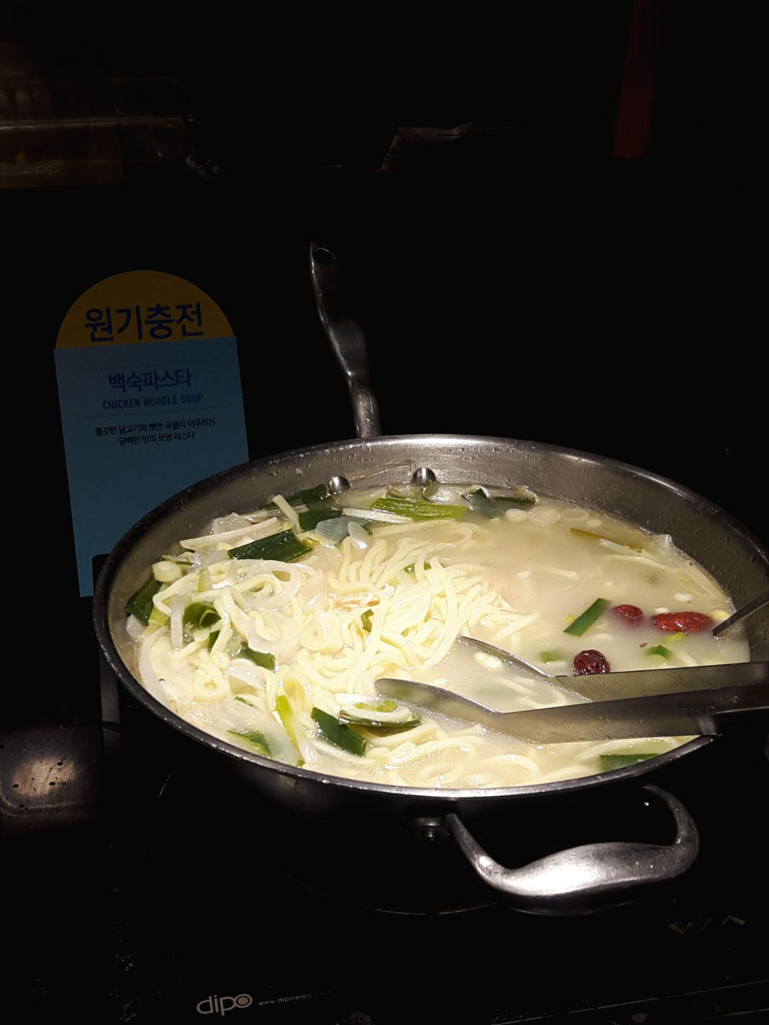 파스타라기보다 짬뽕에 더 가까운 느낌이에요. 백숙의 시원하고 담백한 국물, 그리고 아낌없이 주는 닭백숙토핑이 참 좋았어요. 이건 다음시즌에도 계속 있었으면 좋겠네요.