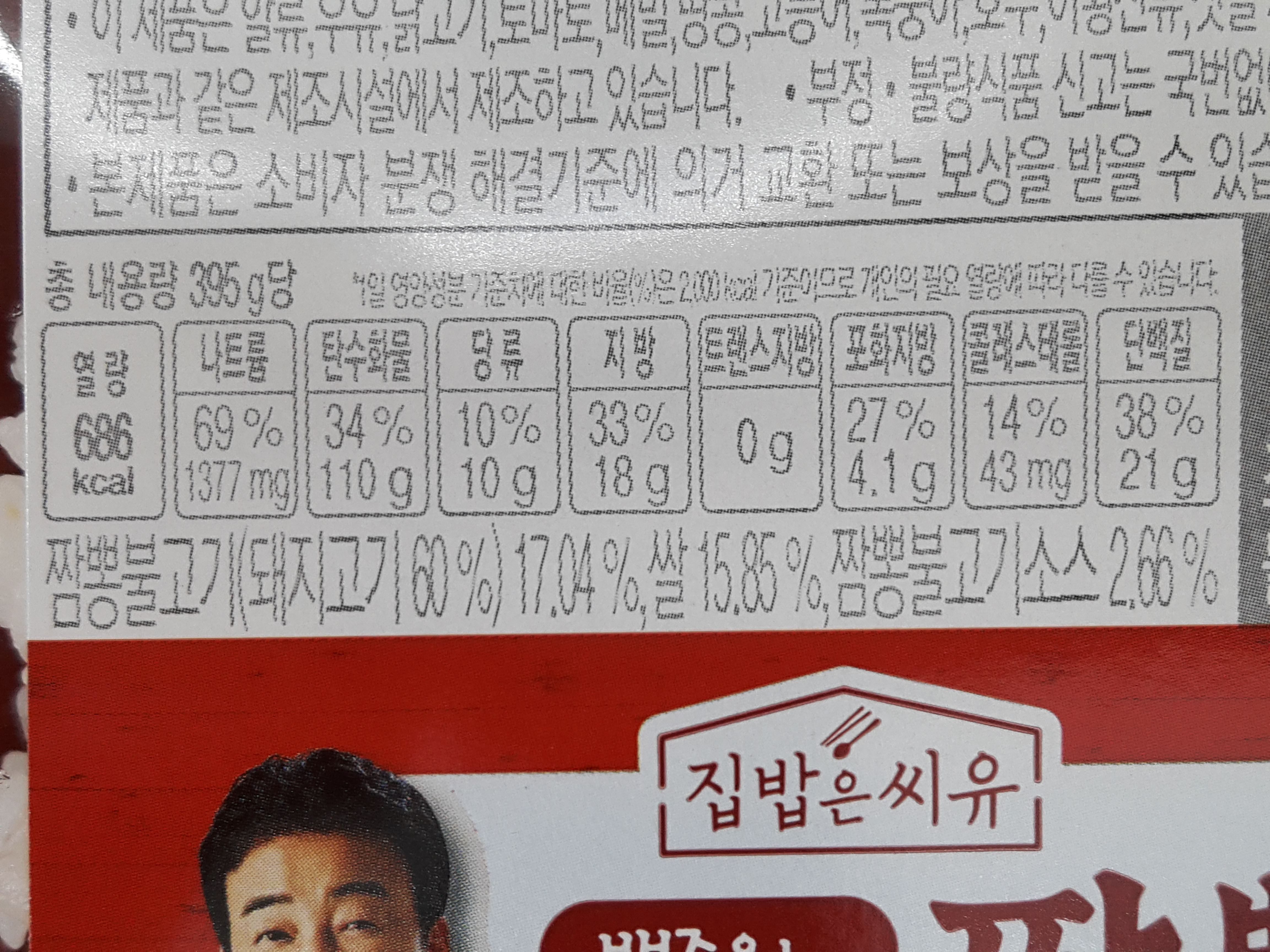 짬뽕불고기(돼지고기 60%) 17.04%, 쌀 15.85%, 짬뽕불고기소스 2.66% 들어가요.