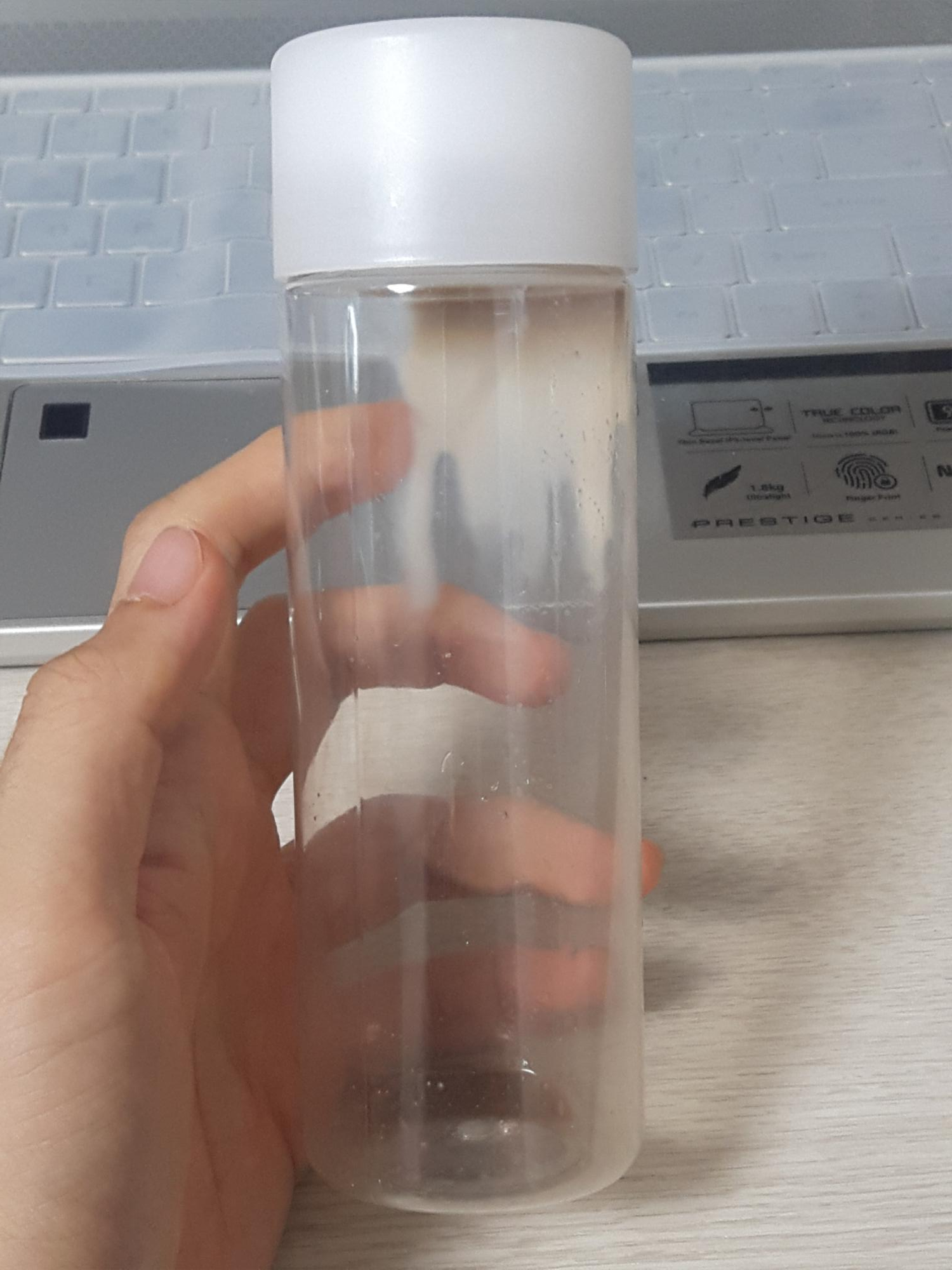 인쇄물 제거하고 보니 그냥 물통으로 써도 되겠네요. 어디서 사왔다고 해도 믿겠어요. 플라스틱용기가 이뻐서 버리기 아깝네요. 그냥 물통으로 쓰기로 합니다. ㅎㅎ