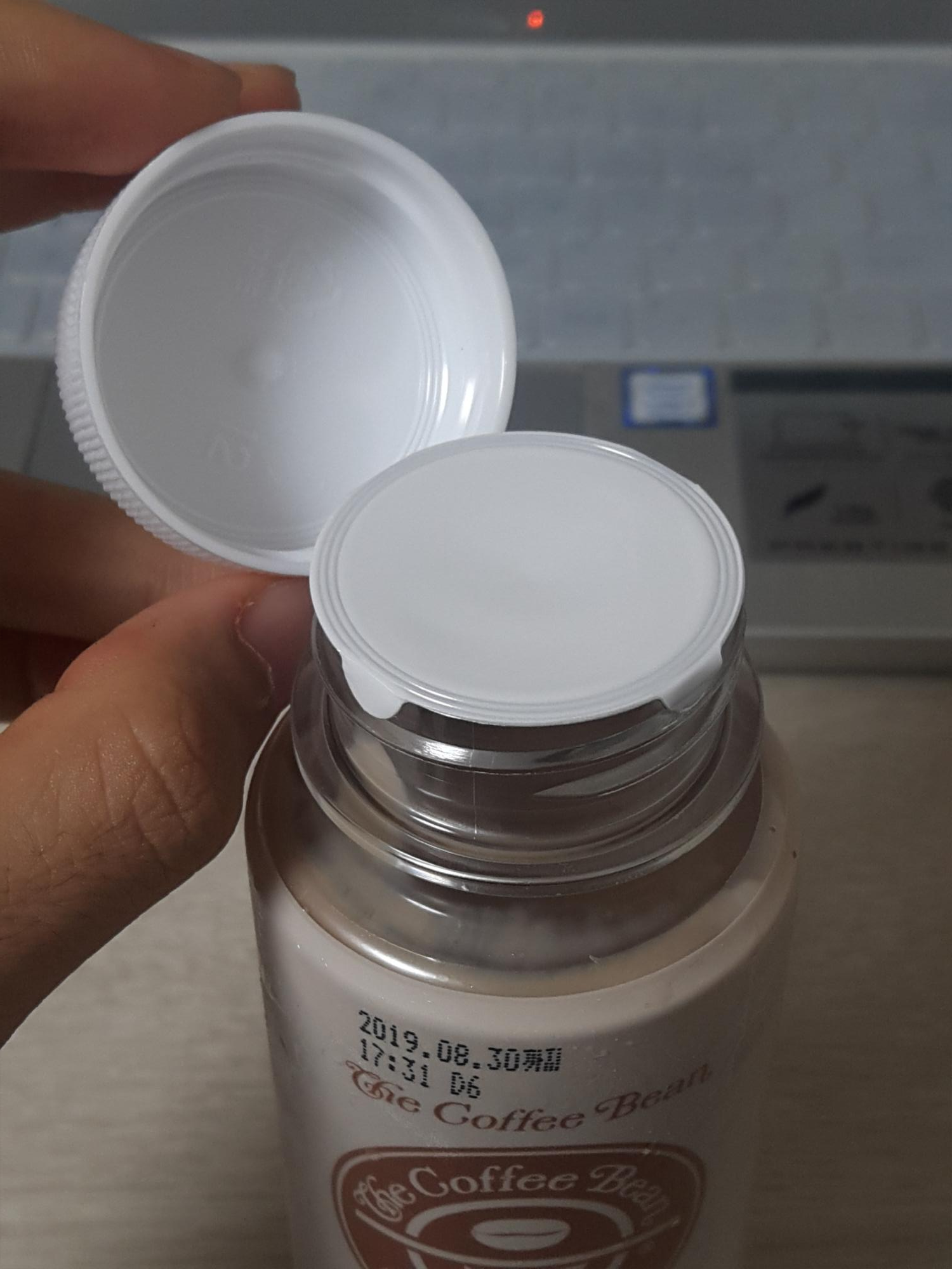 요렇게 3중으로 커피를 보호했어요. ㅎㅎ 큰 뚜껑, 작은뚜껑, 은박지 입니다. 커피맛은 일반적인 카페라떼 맛이에요. 큰 차이는 없어요. 무난무난합니다. 독특한 용기에 비해 맛은 무난하네요.