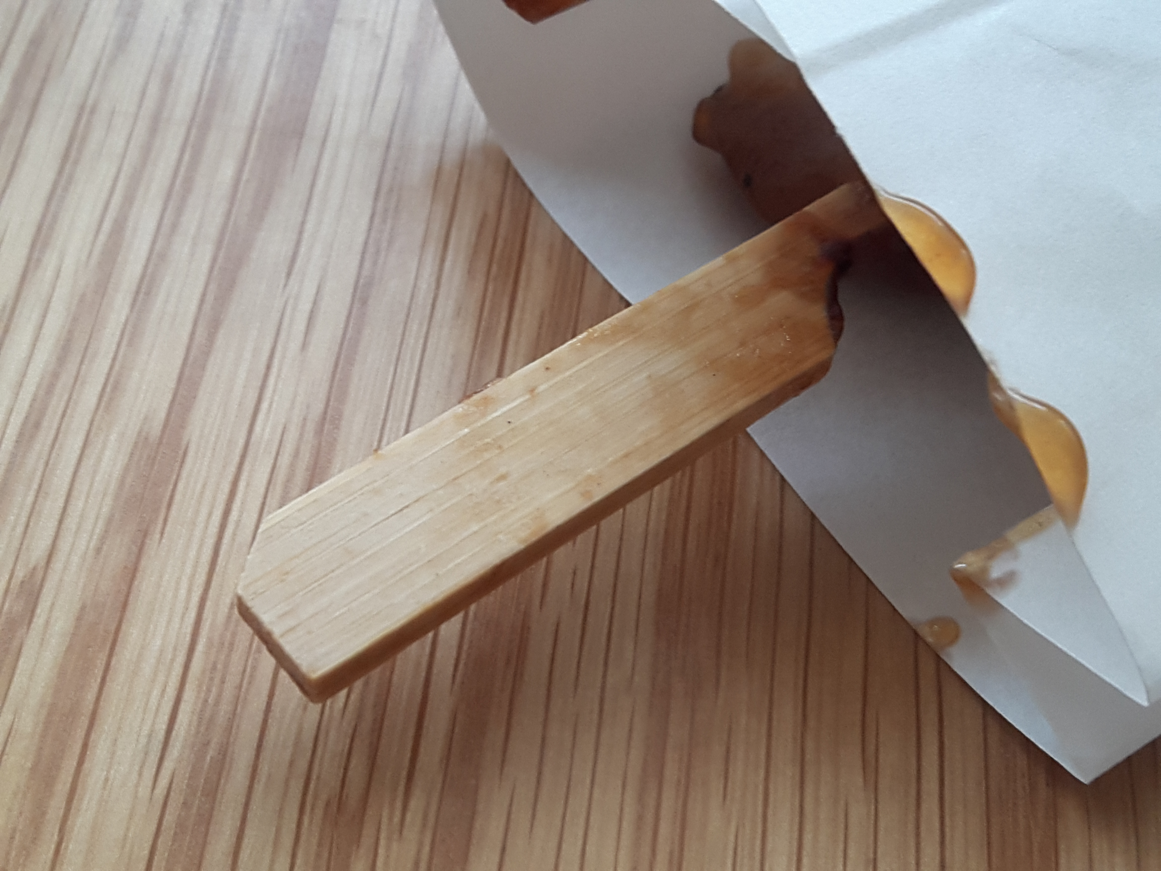데리야끼맛 닭꼬치는 막대기에 아무것도 안써져 있어요. 매운맛은 매운맛이라고 써져있는데 ㅎㅎ 데리야끼소스가 잘 묻어 있습니다.