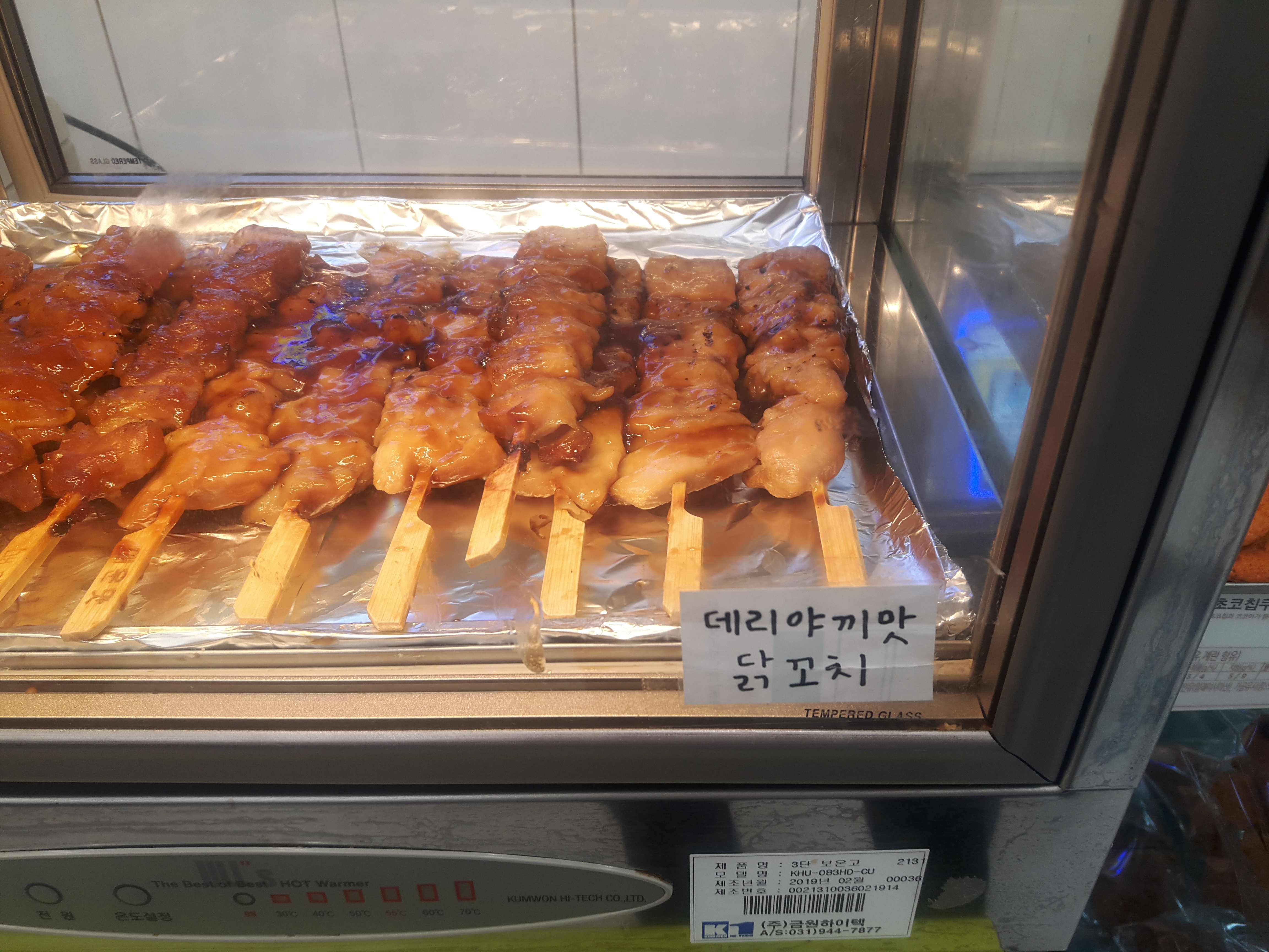 얼마전에 매운맛 닭꼬치를 먹었는데, 그 옆에 데리야끼맛 닭꼬치가 있길래 오늘은 이걸 먹었어요. ㅎㅎ 데리야끼맛닭꼬치는 2019년 9월 현재 1,700원에 판매하고 있습니다.