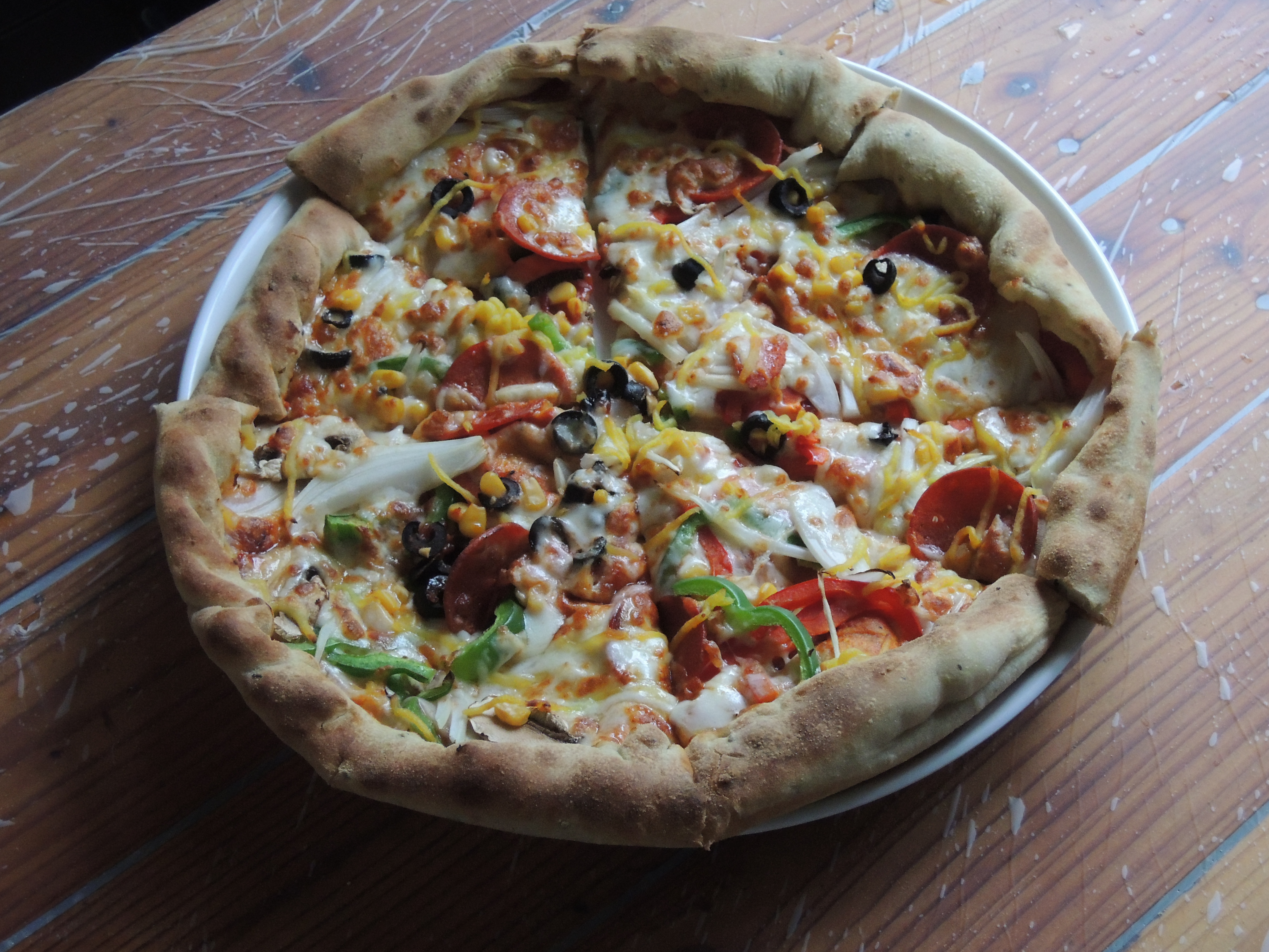 위 사진처럼 잘 구워진 피자가 나옵니다.