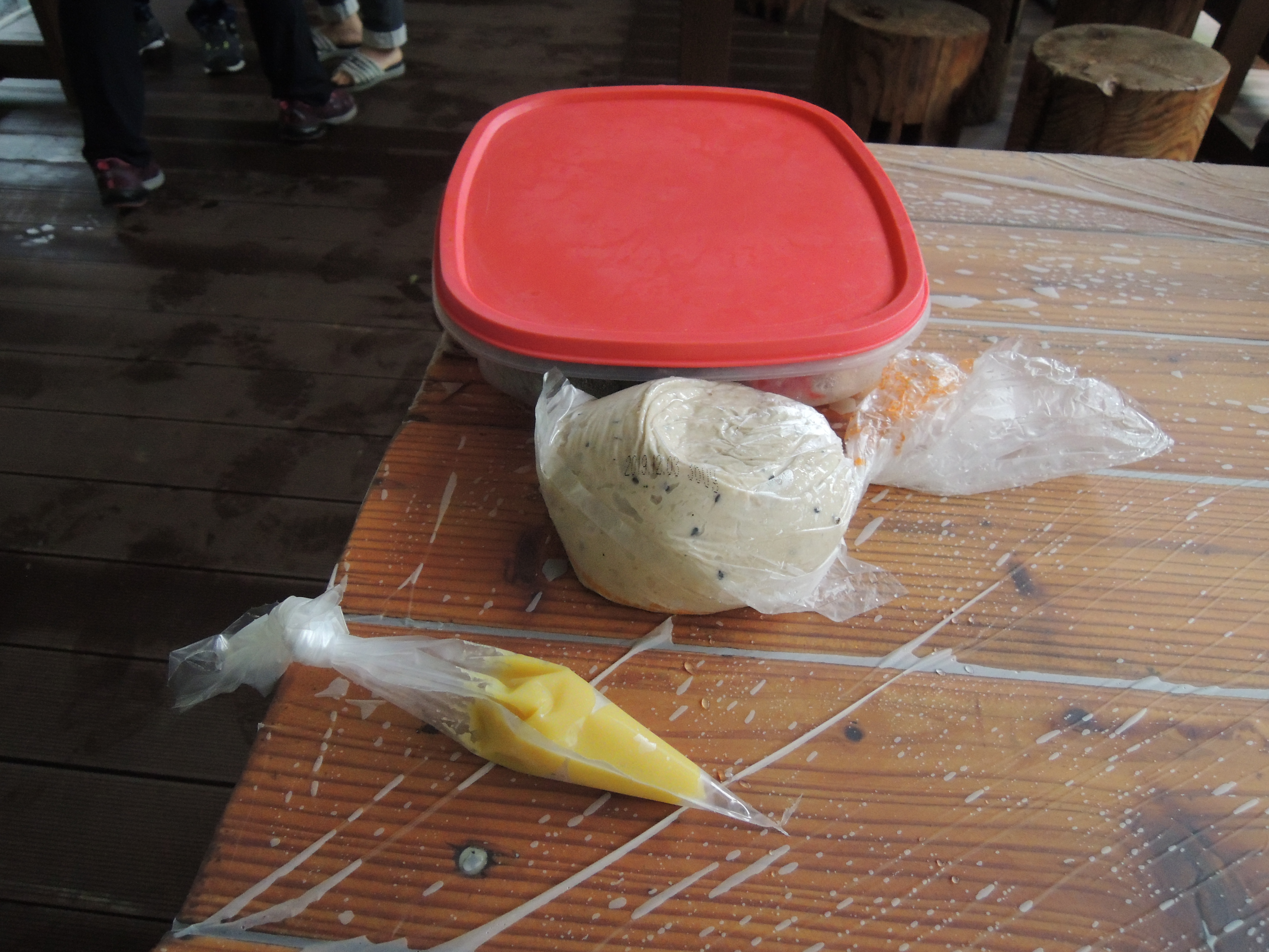 미리예약하고 가서 자리에 고구마무스, 피자토핑, 반죽이 준비되어 있어요. 4인1조로 피자만들기 실습을 해보았습니다.