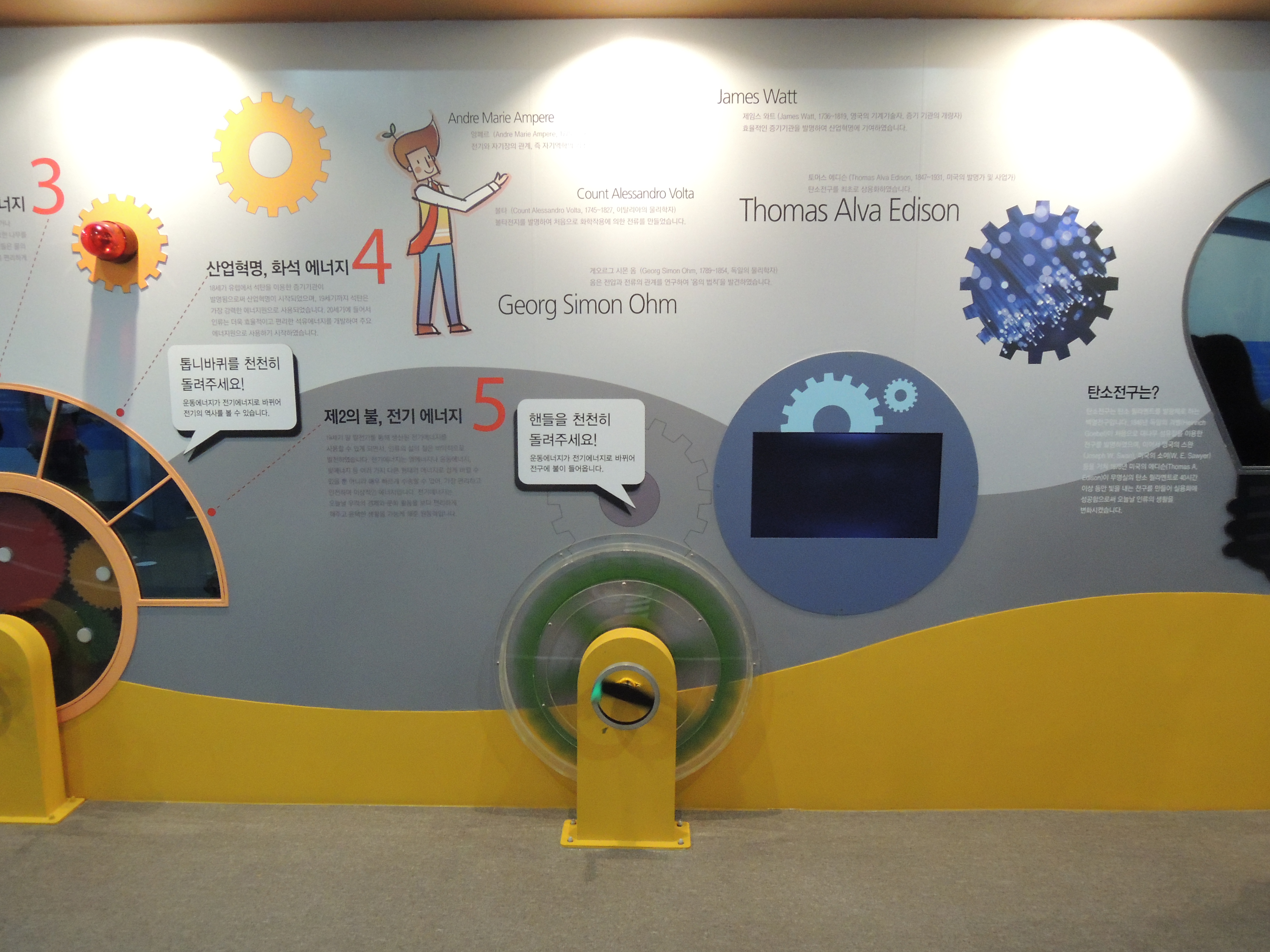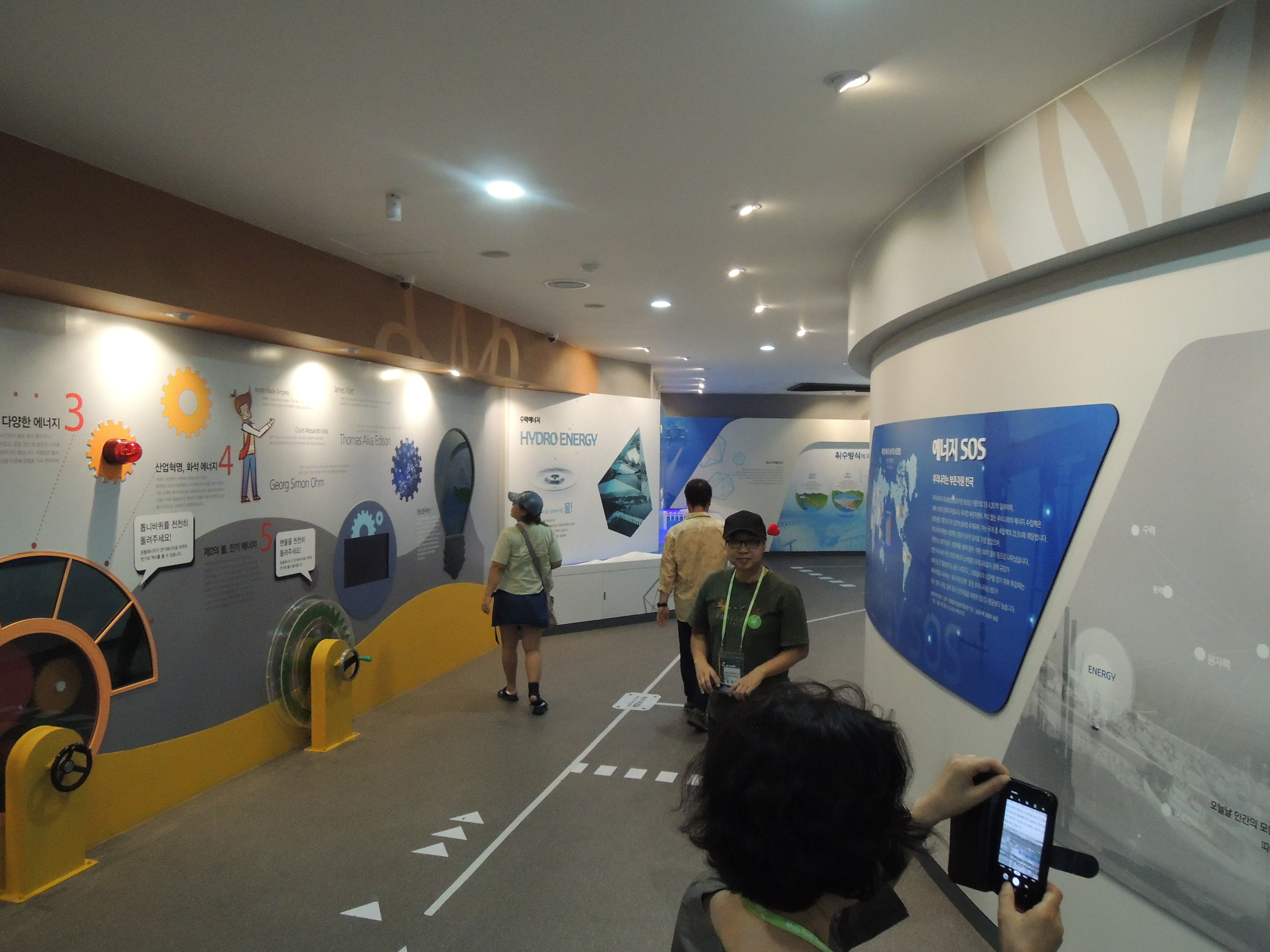 안쪽은 이렇게 에너지에 대한 내용, 전기를 직접 만들어보는 체험 등 다양한 체험을 해볼 수 있게 해놓았어요. 바닥에 동선을 표시해둬서 햇갈리지않고 잘 관람할 수 있어요.