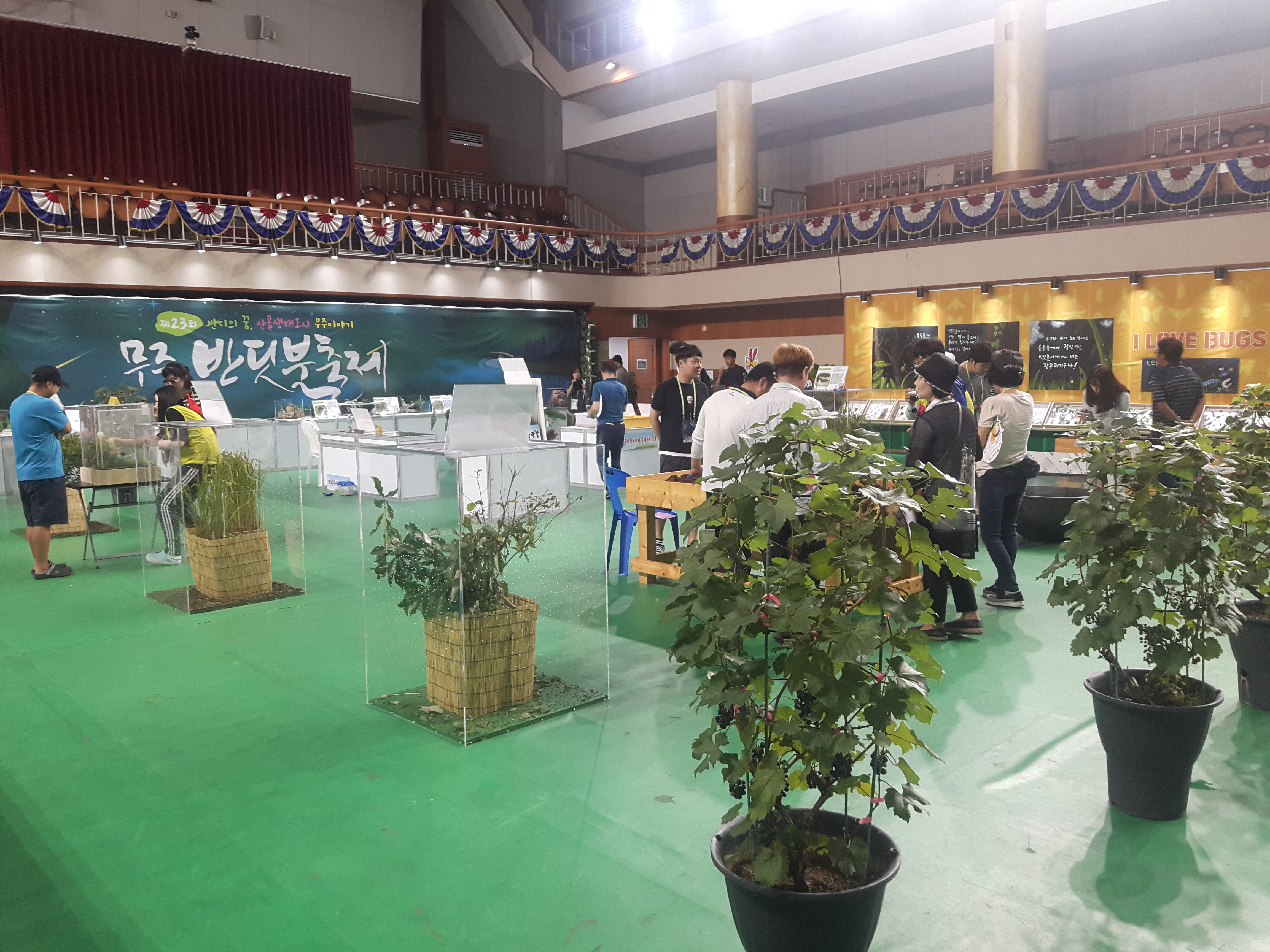 전시실 안에는 다양한 살아있는 곤충들이 있어요. 이 곤충들을 볼 수도 있고, 만져볼 수도 있어요.