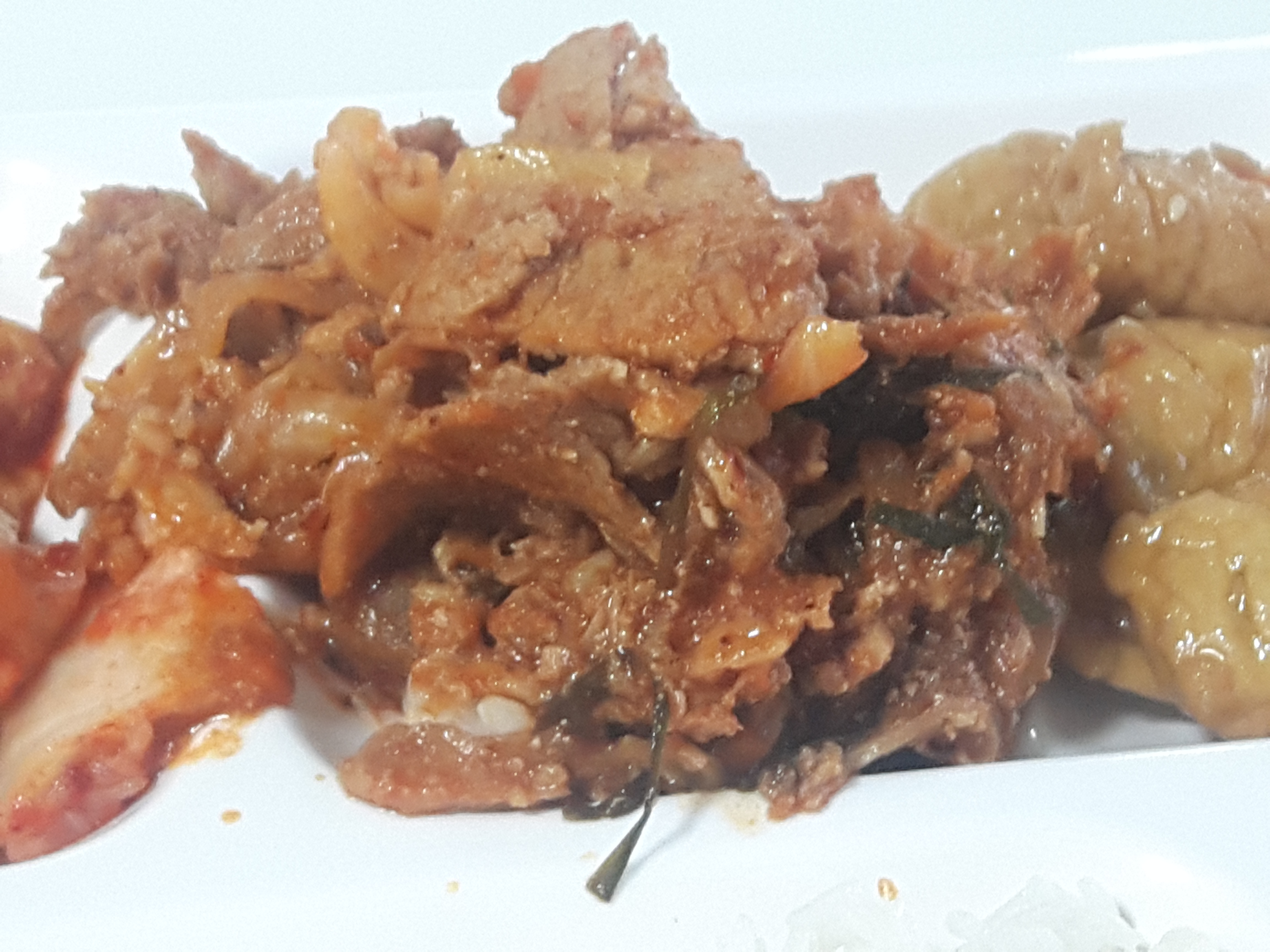 제육볶음 입니다. 제가 제일 좋아하는 반찬 중 하나에요. 고기고기한게 참 좋아요. 이것 역시 무난한 제육볶음 맛입니다.밥비벼먹으면 맛있어요.