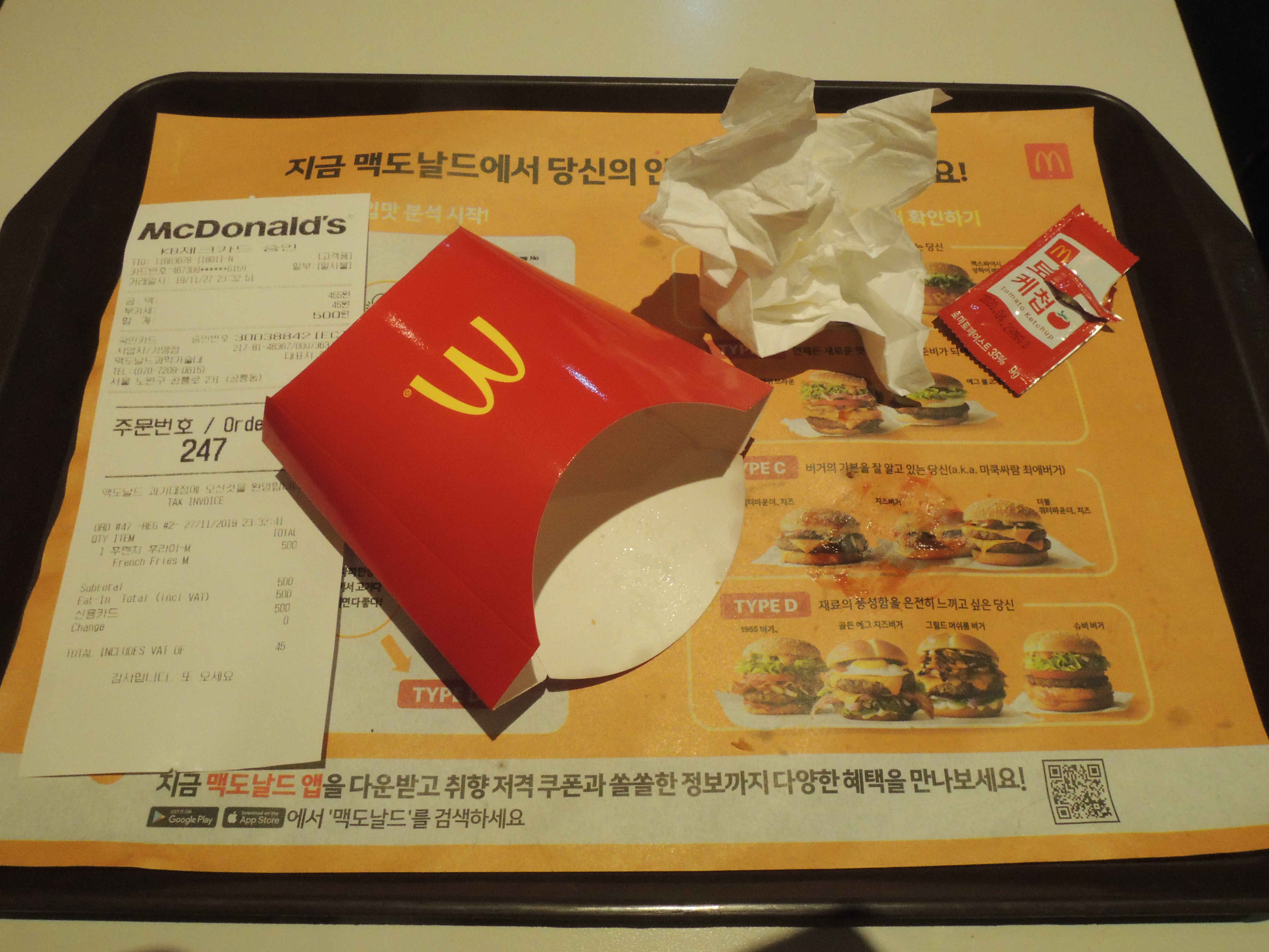 맥도날드에서 저녁에 스마트쿠폰 할인메뉴가 있어서 후렌치후라이 미디움 사이즈 먹었어요.