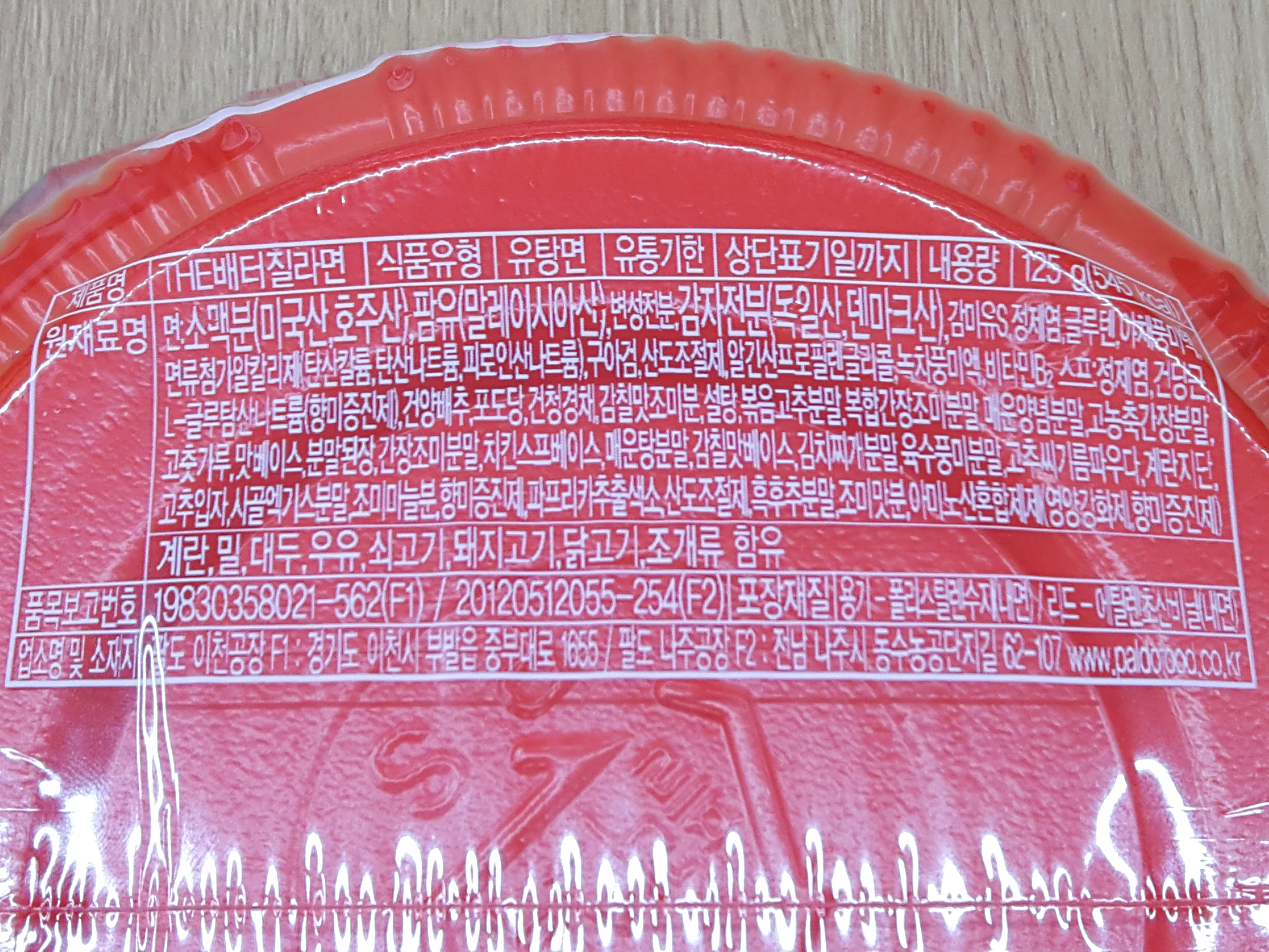 The 배터질라면 입니다. 투명비닐에 이렇게 로고를 붙여놓았어요.