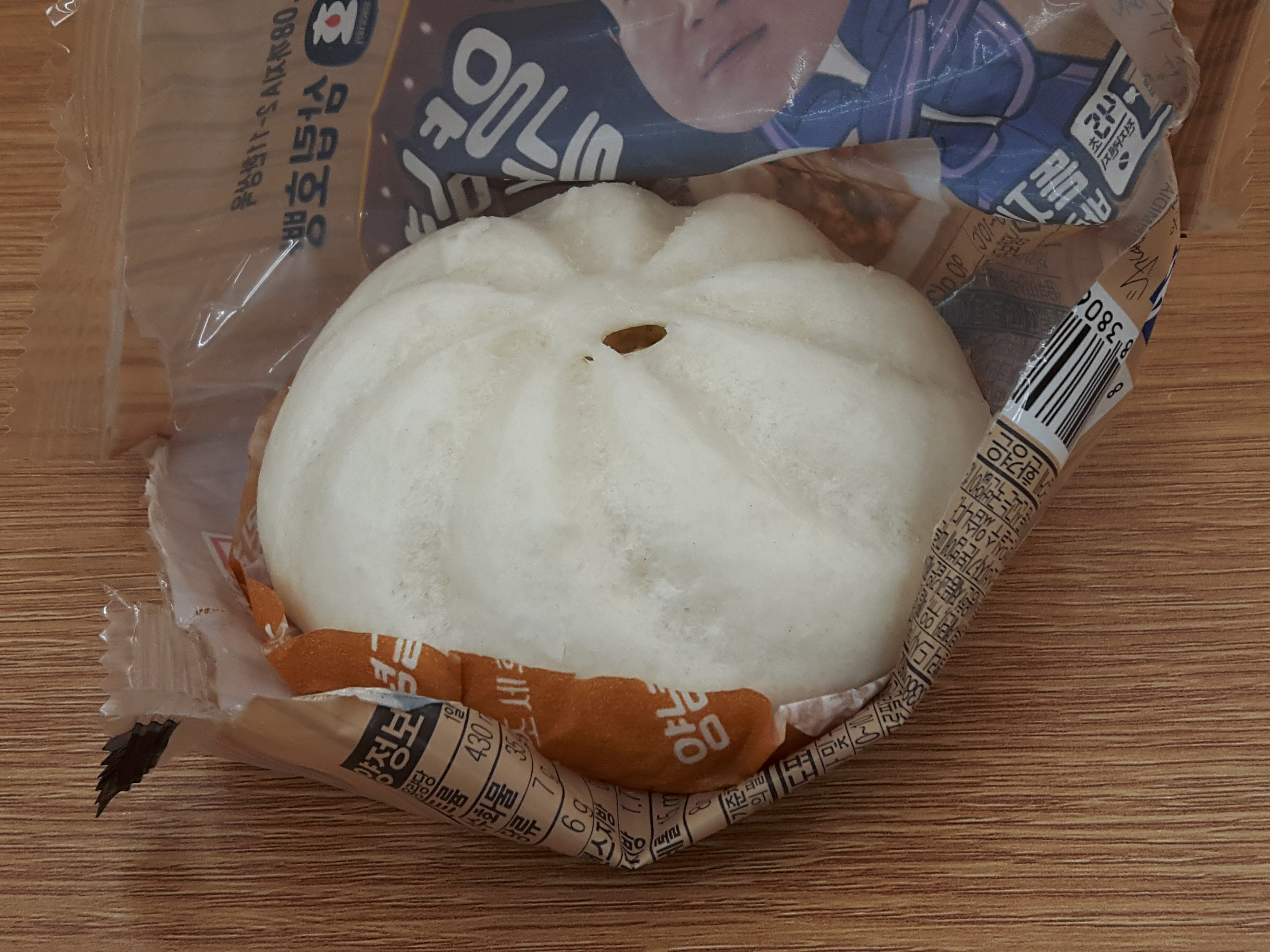 포장지를 뜯으면 삽립호빵이 모습을 드러냅니다. 전자렌지 45초 돌리지말고 한 40초나 30초만 돌리세요. 45초 돌리면 뜨겁더라고요.