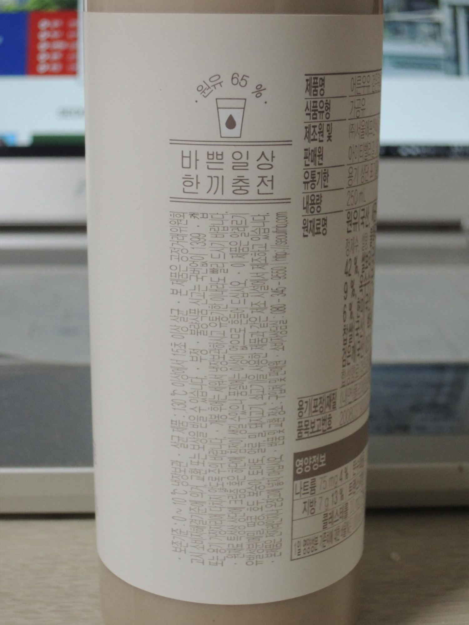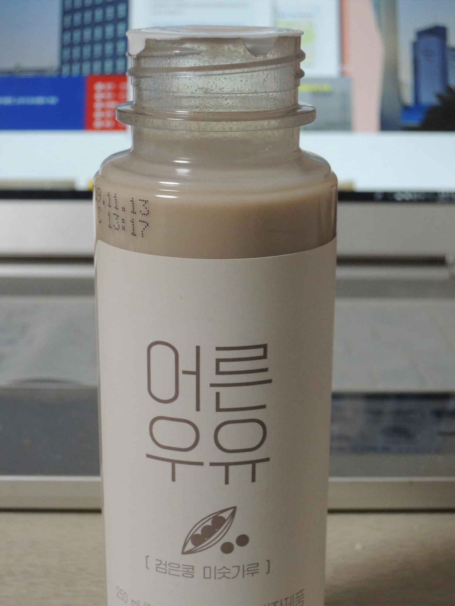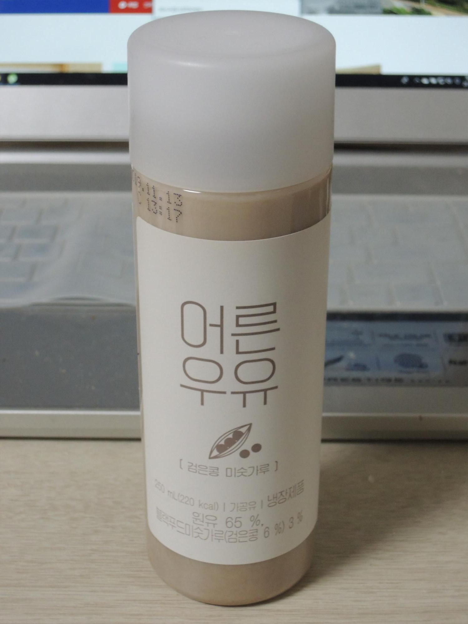 검은콩 미숫가루맛이네요. 어른우유라는 정직한 글자체가 돋보이고, 텀블러를 닮은 플라스틱 용기와, 깔끔하고 간결한 패키지 인쇄물이 돋보이는 어른우유 입니다.
