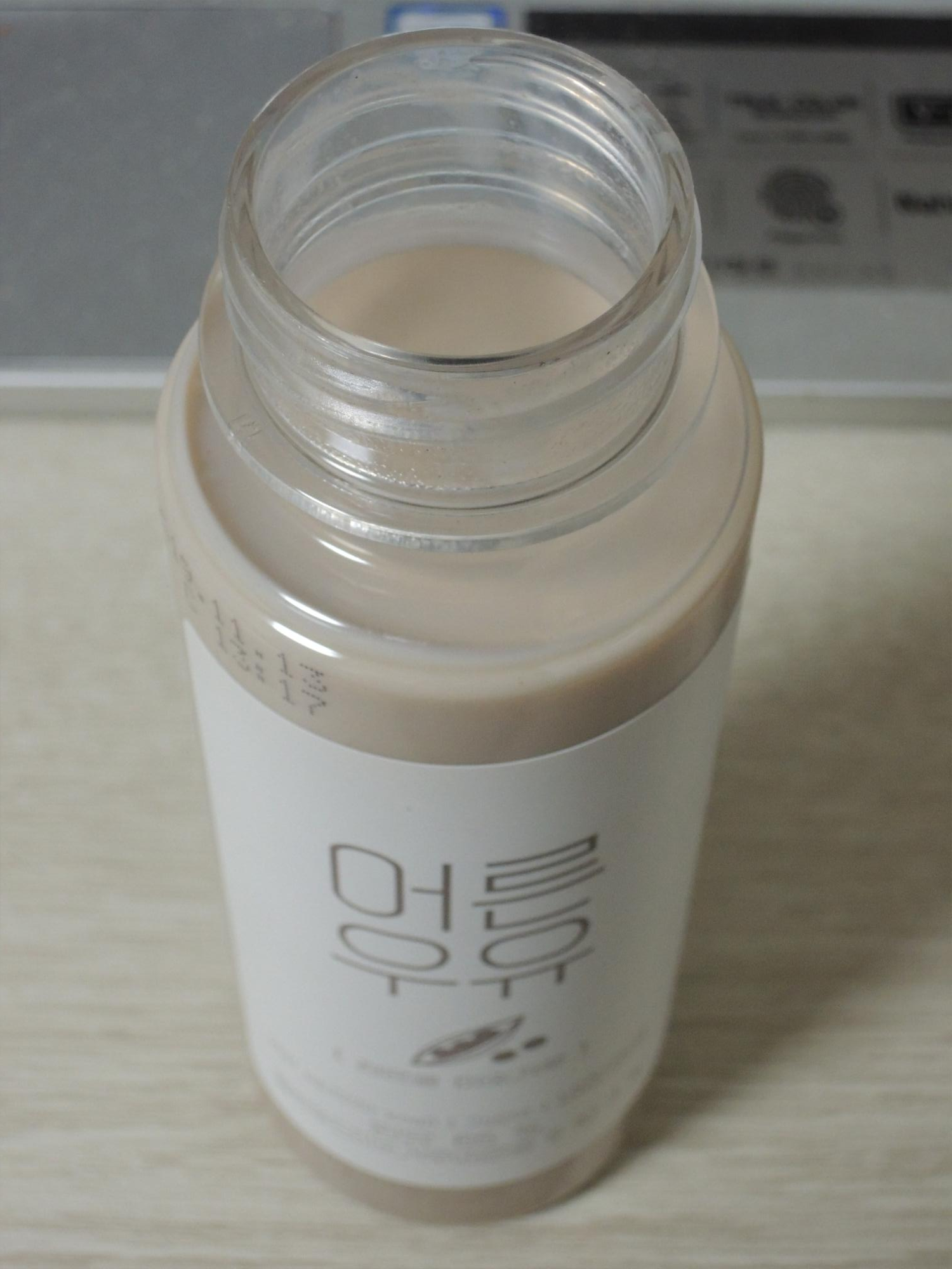 밀봉된 비닐을 벗겨내면 음료가 모습을 드러냅니다. 미숫가루탄 우유 색입니다.
