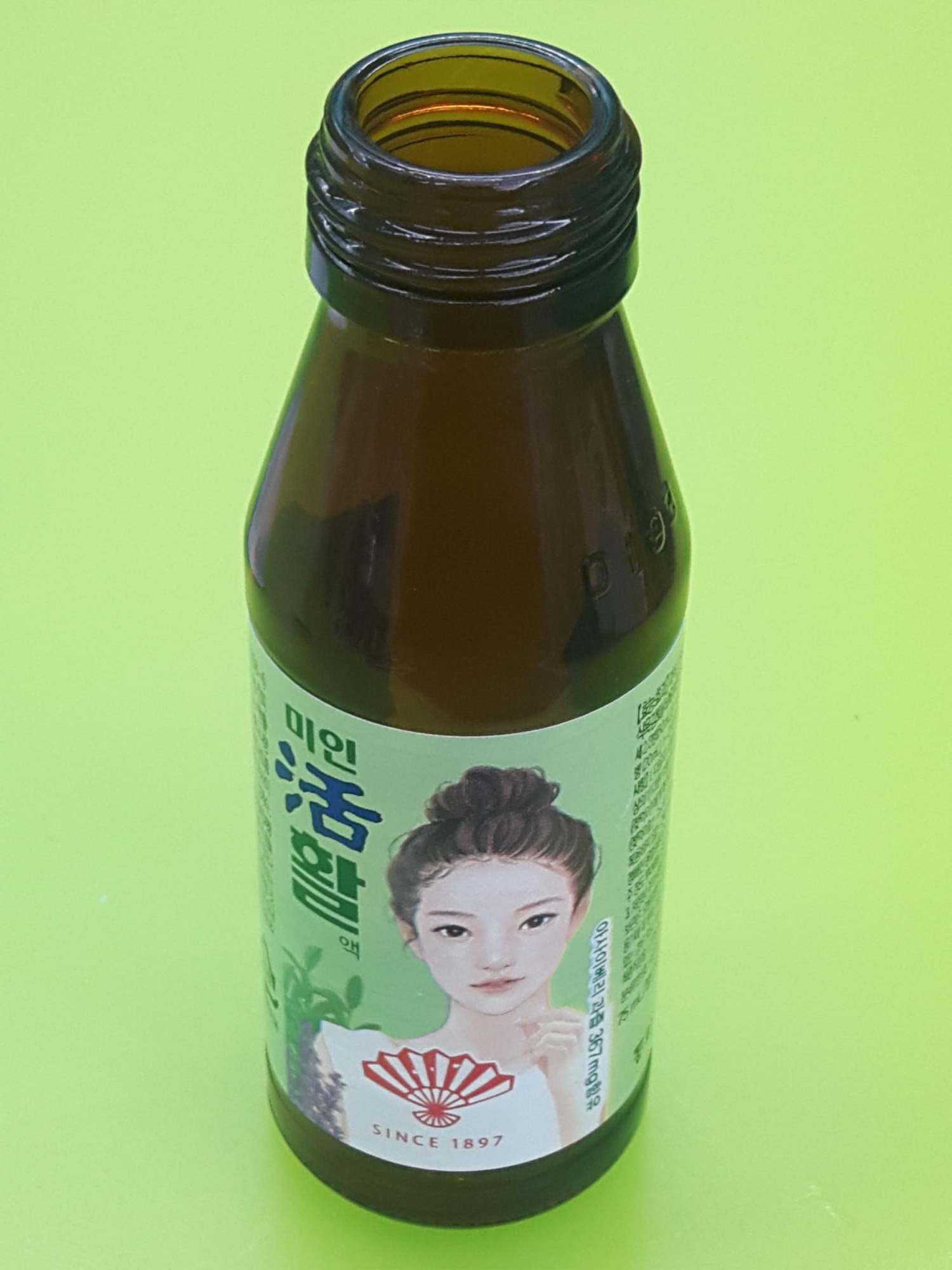 보통 까스활명수가 빨강색을 많이 쓴 패키지디자인이라면 미인활액은 녹색을 많이 썼어요. 전면 우측에 여자 일러스트가 돋보이네요. 좌측에는 아사히베리로 보이는 열매가 있고요. 전면 좌측상단에 미인활액이라고 제품명이 적어져 있어요.