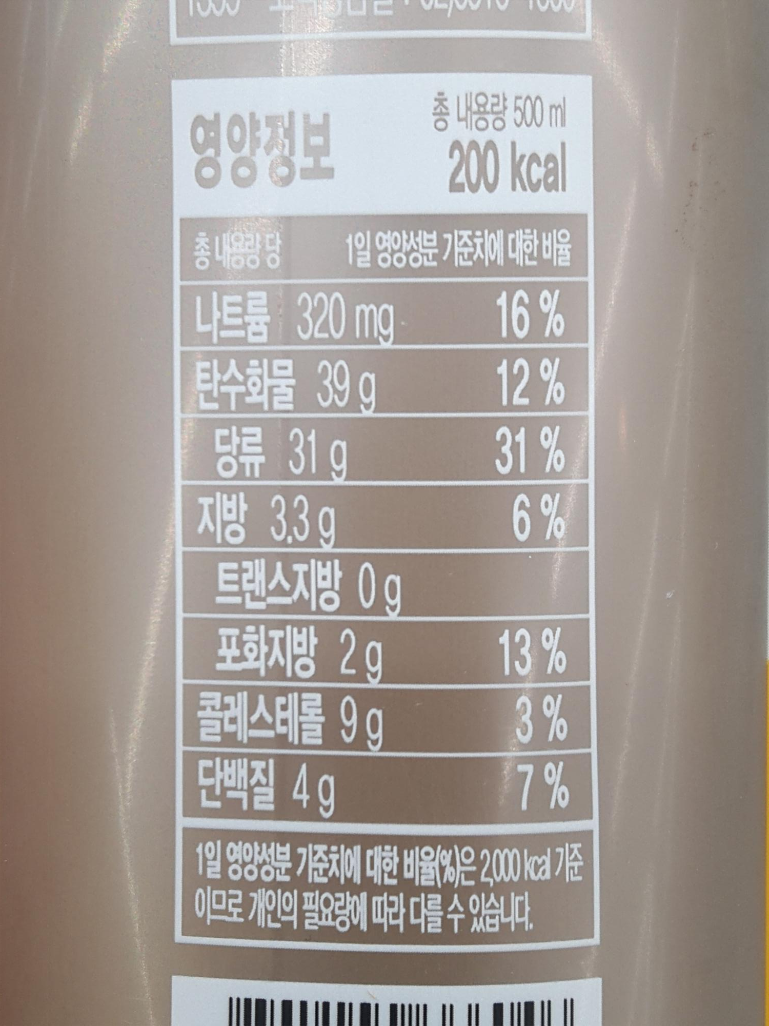 둘 다 총 내용량은 500ml이고 제가 이번에 먹은 민생 단 커피는 칼로리가 200kcal에요.