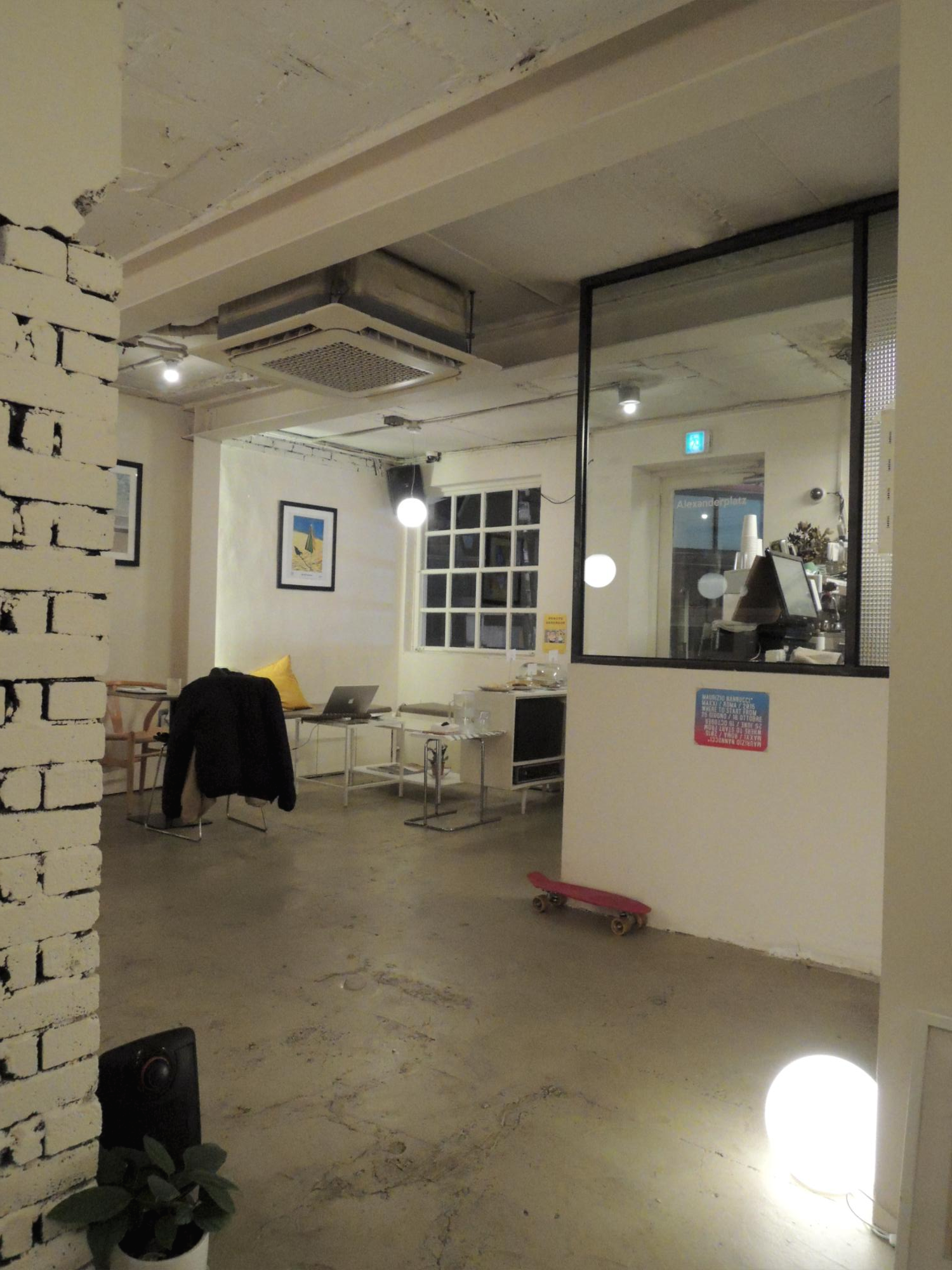 내부는 이렇게 되어 있습니다. 약간 예술가 작업실같은 느낌이에요. 흰색페인트로 러프하게 칠한 느낌이 참 좋습니다.