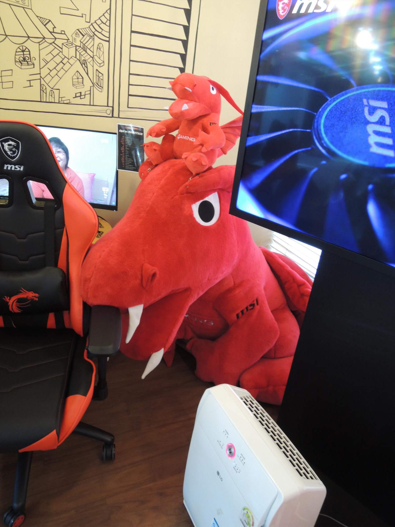 서비스센터에는 이렇게 MSI 노트북을 체험해볼 수 있는 체험공간도 마련되어 있어요. MSI 마스코트 용용이도 보이네요.