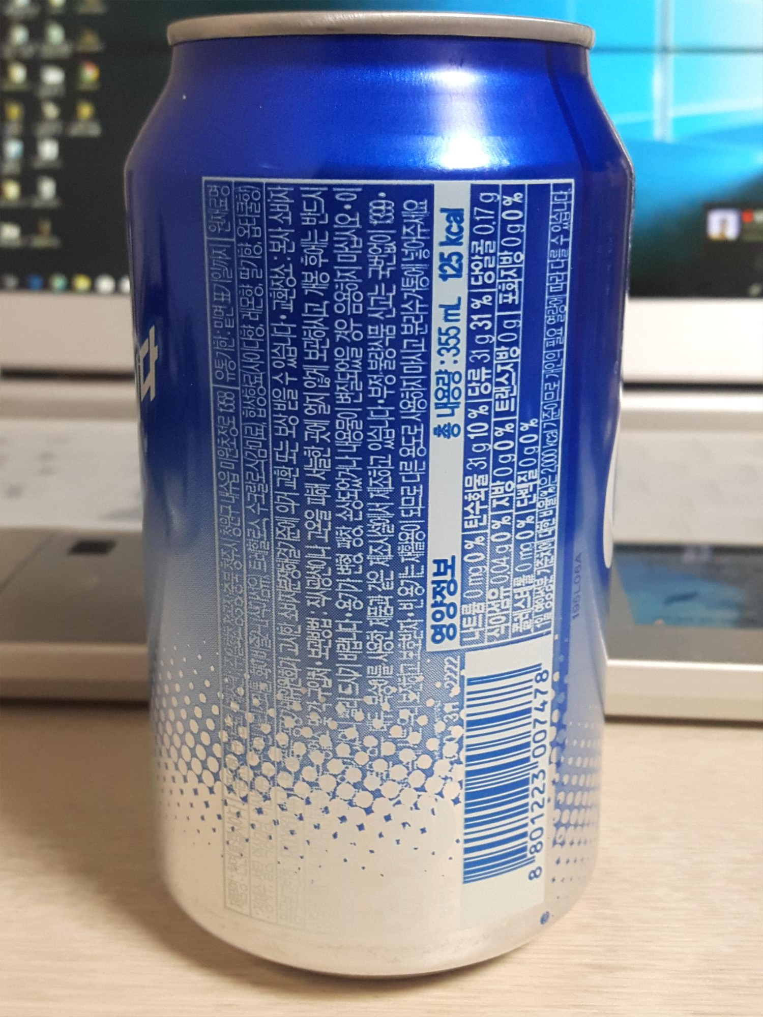 이 바뀐거 같기도 하네요. 총용량은 355ml이고 칼로리는 125kcal 입니다. 가격은 다른 사이다랑 같은 가격인 1,500원정도 했던거 같아요.