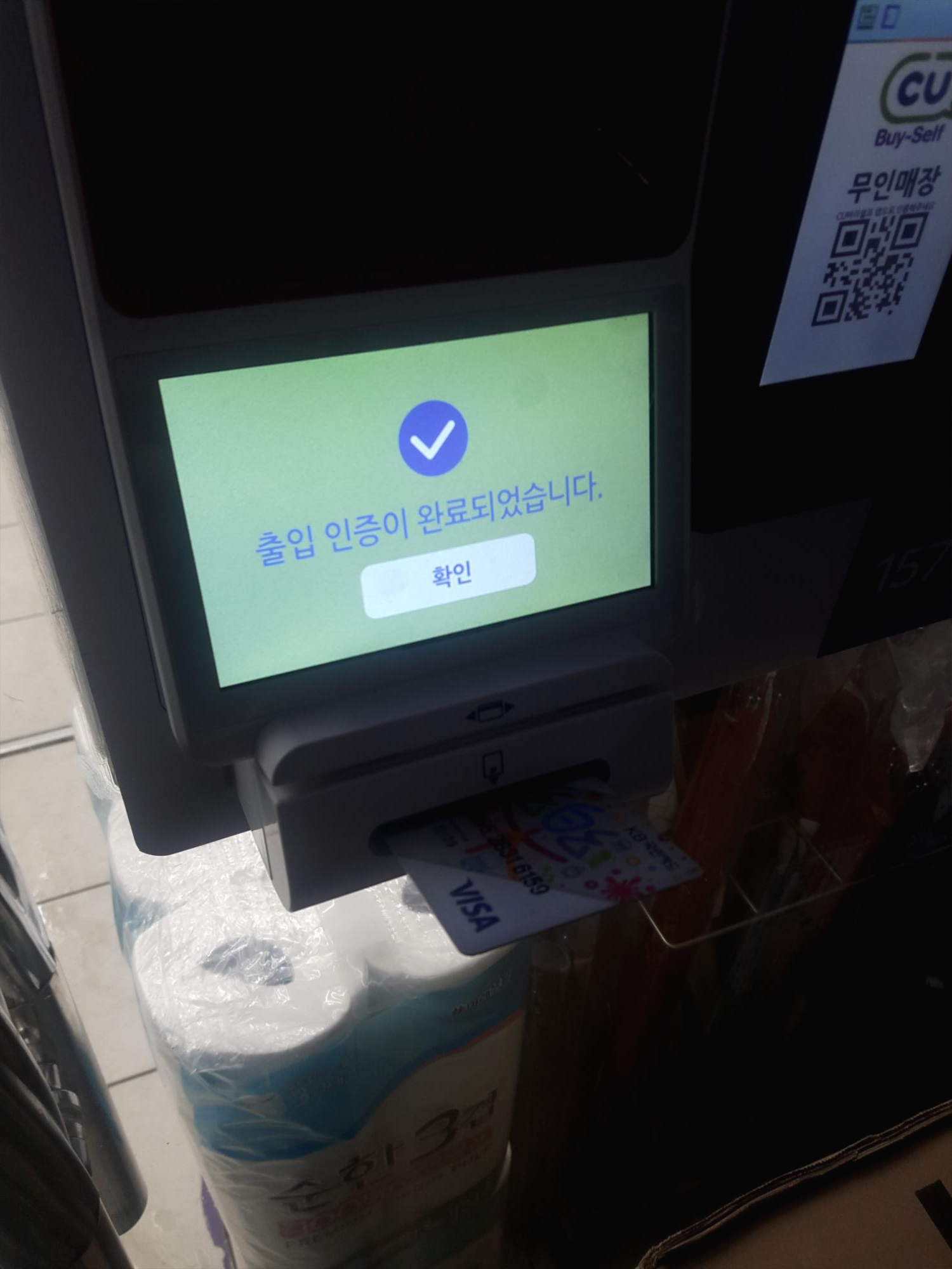 셀프매장으로 이렇게 신용카드를 넣으면 출입인증이 됩니다. 신기해요!