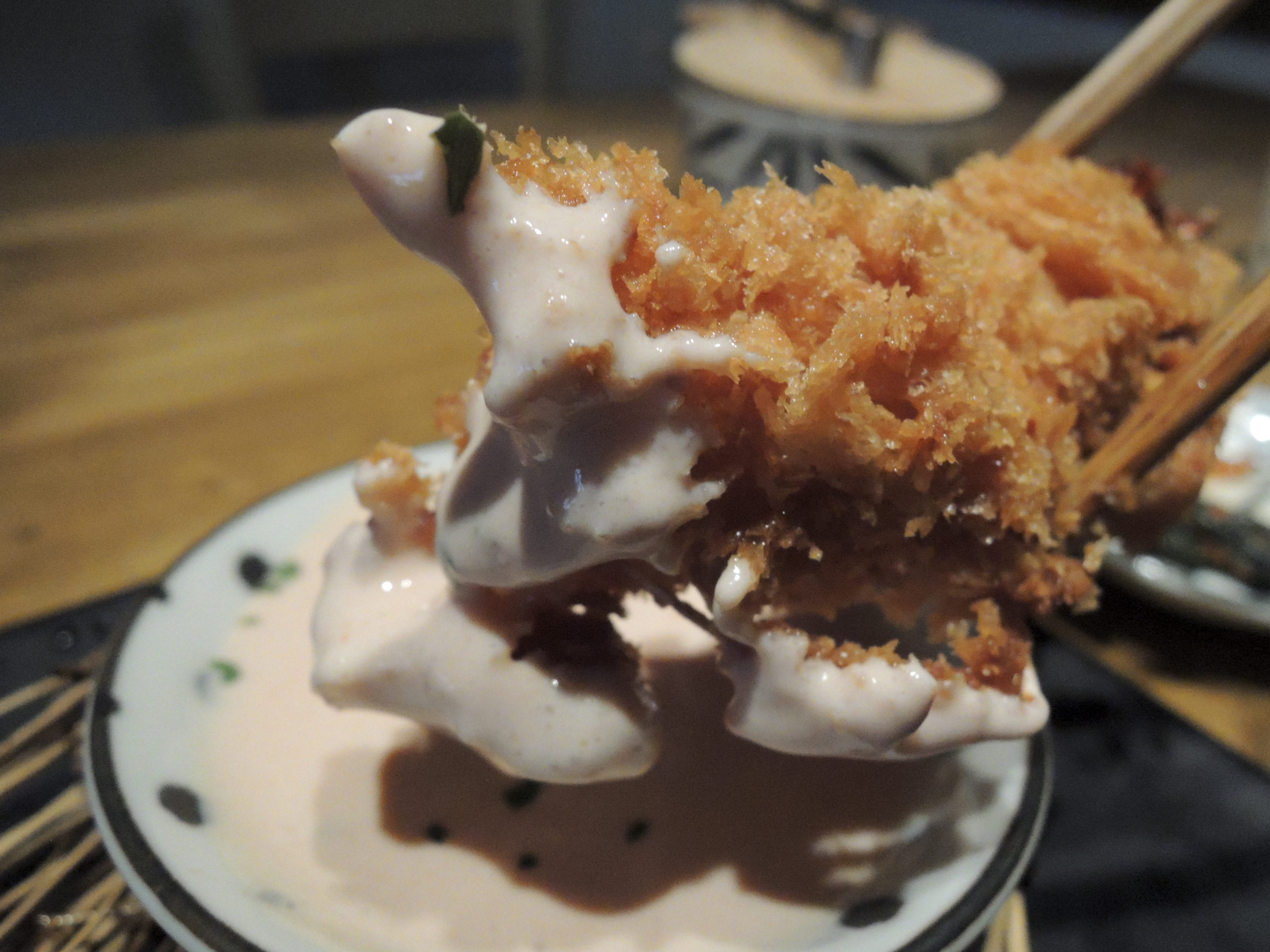 소스에 푹 찍어 먹으면 맛있습니다. 소스가 타르타르같긴한데 조금 변형시킨느낌이더라고요. 많이 다른것은 아니고 좀 더 부드럽게 먹을 수 있습니다.