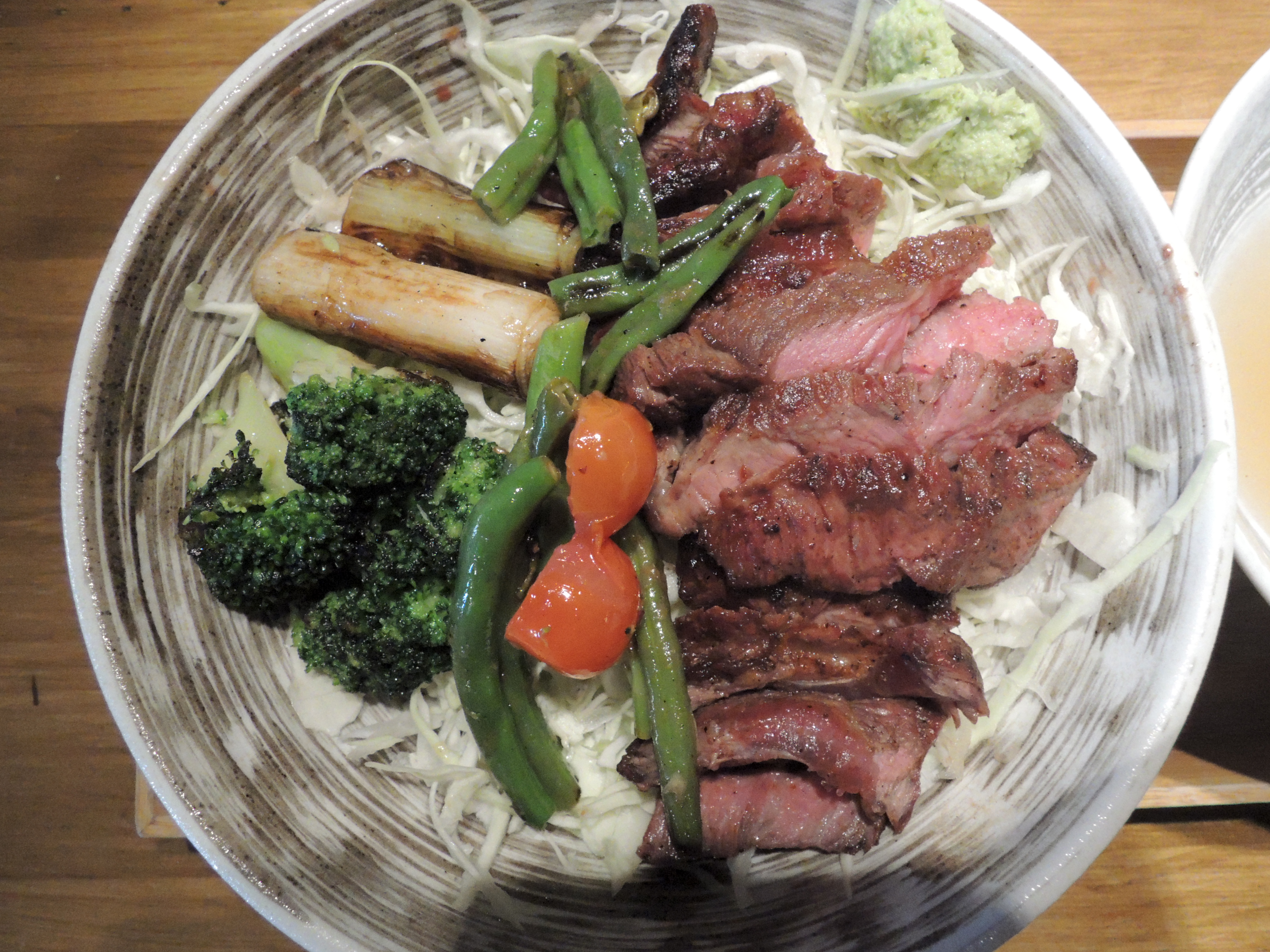모든 조리를 주방에서 직접 하기 때문에 음식이 빠르게 나오는 편은 아닙니다. 일단 스테이크 덮밥이 먼저 나오고 좀 기다리면,