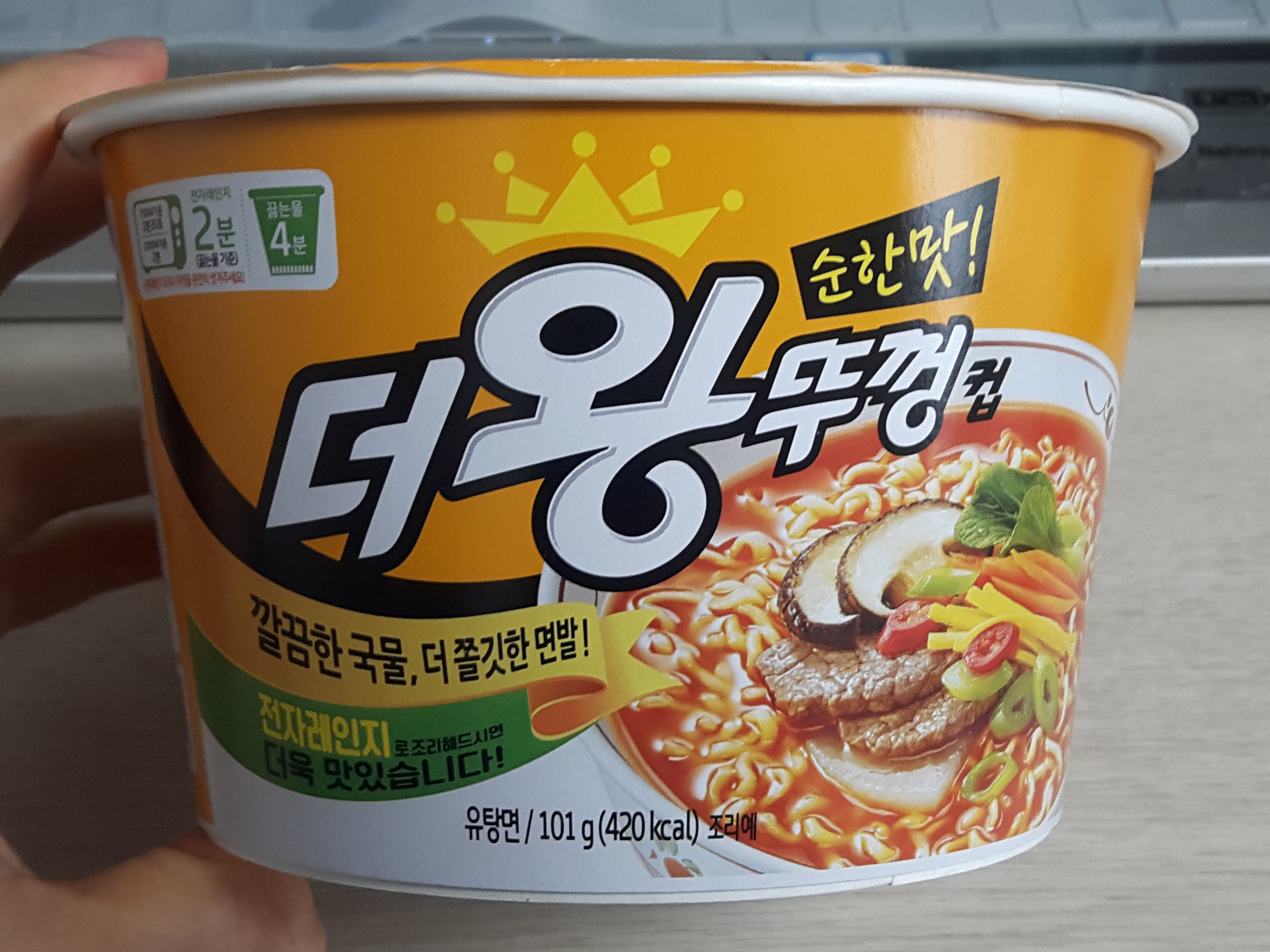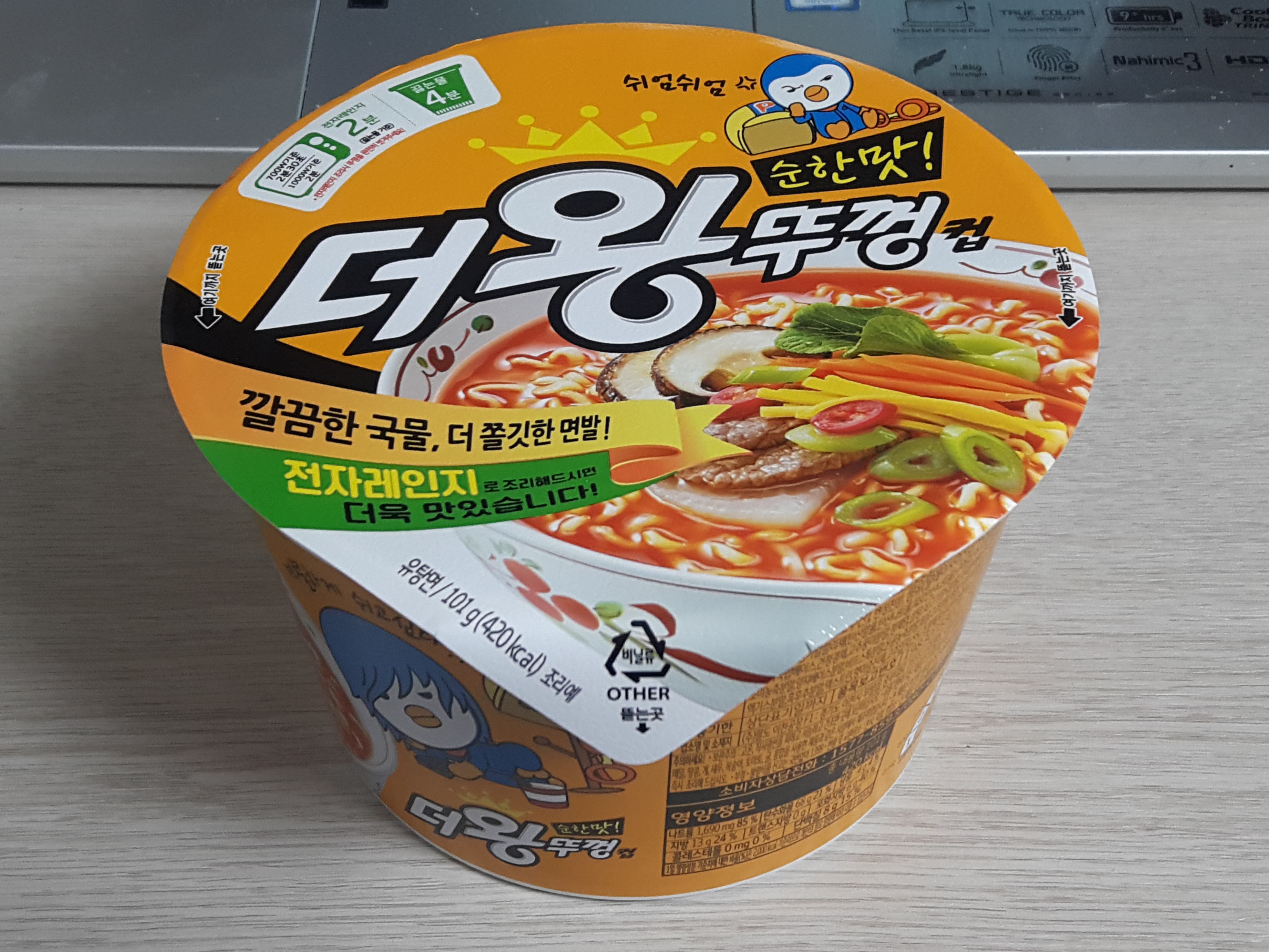 냠냠 맛있게 잘 먹었습니다. 요즘 컵라면은 전자렌지에 조리해 먹는게 대세인가봐요. 전자렌지 가능용기에 나온 더 왕뚜껑 컵 순한맛 잘먹었습니다. 이번에는 그냥 일반조리법으로 먹었지만, 다음에는 꼭 전자렌지에 조리해 먹어봐야겠어요.